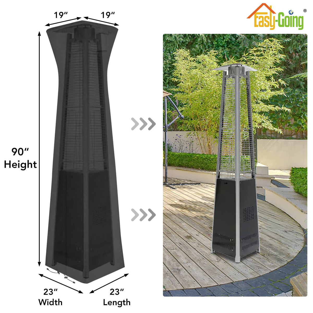 Easy-Going Pyramid Torch Patio Heater Cover With Zipper And Storage Bag, Waterproof Outdoor Heater Cover Dustproof, Uv-Resisant, Wind-Resistant (90'H X 23'L X 23'W, Black)