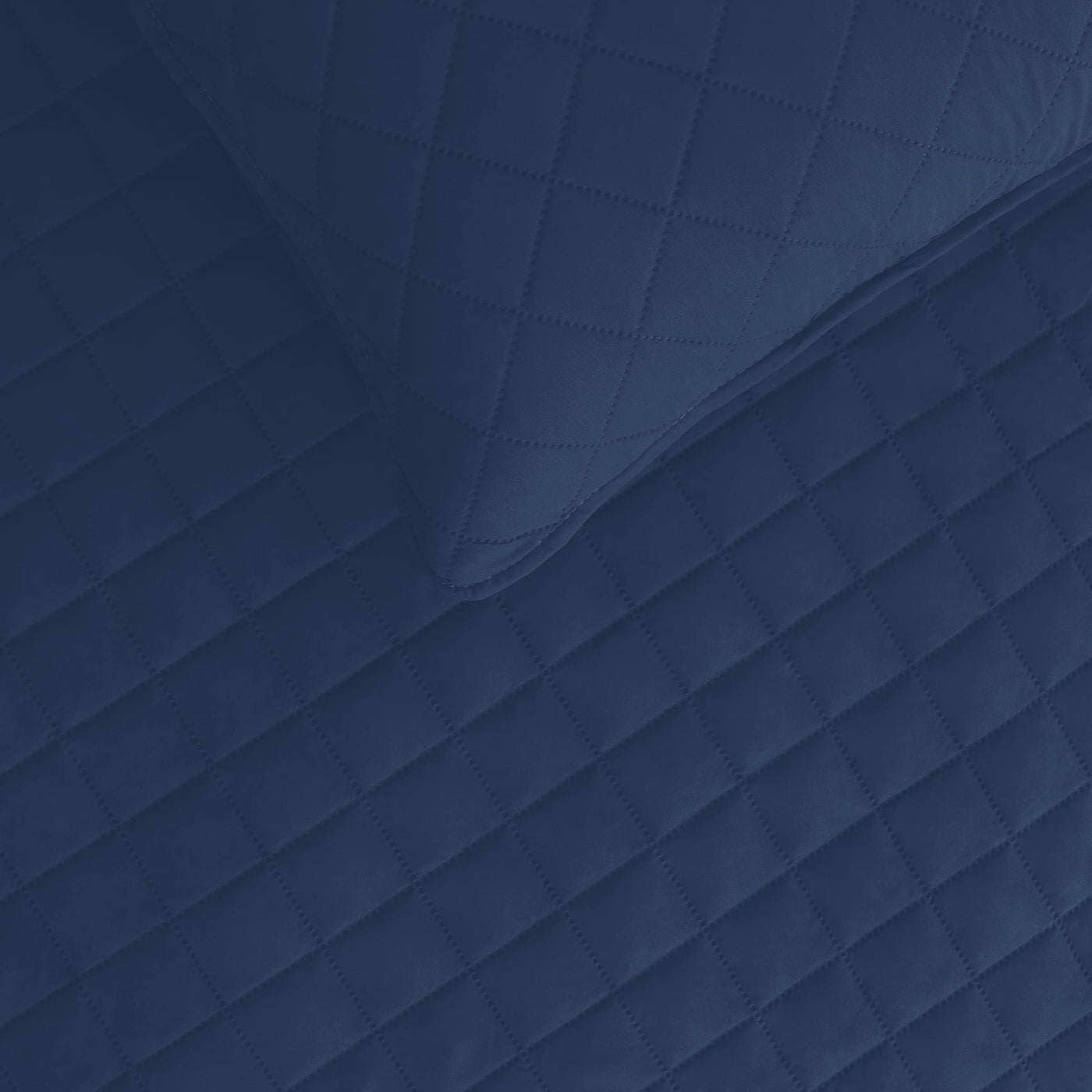 Easy-Going Queen Plus Size Reversible Quilt Set With 1 Quilt And 2 Pillow Shams, Soft Bed Quilt Cover, Water Resistant Lightweight Microfiber Bedspread, Stain Resistant, Dark Blue/Light Blue