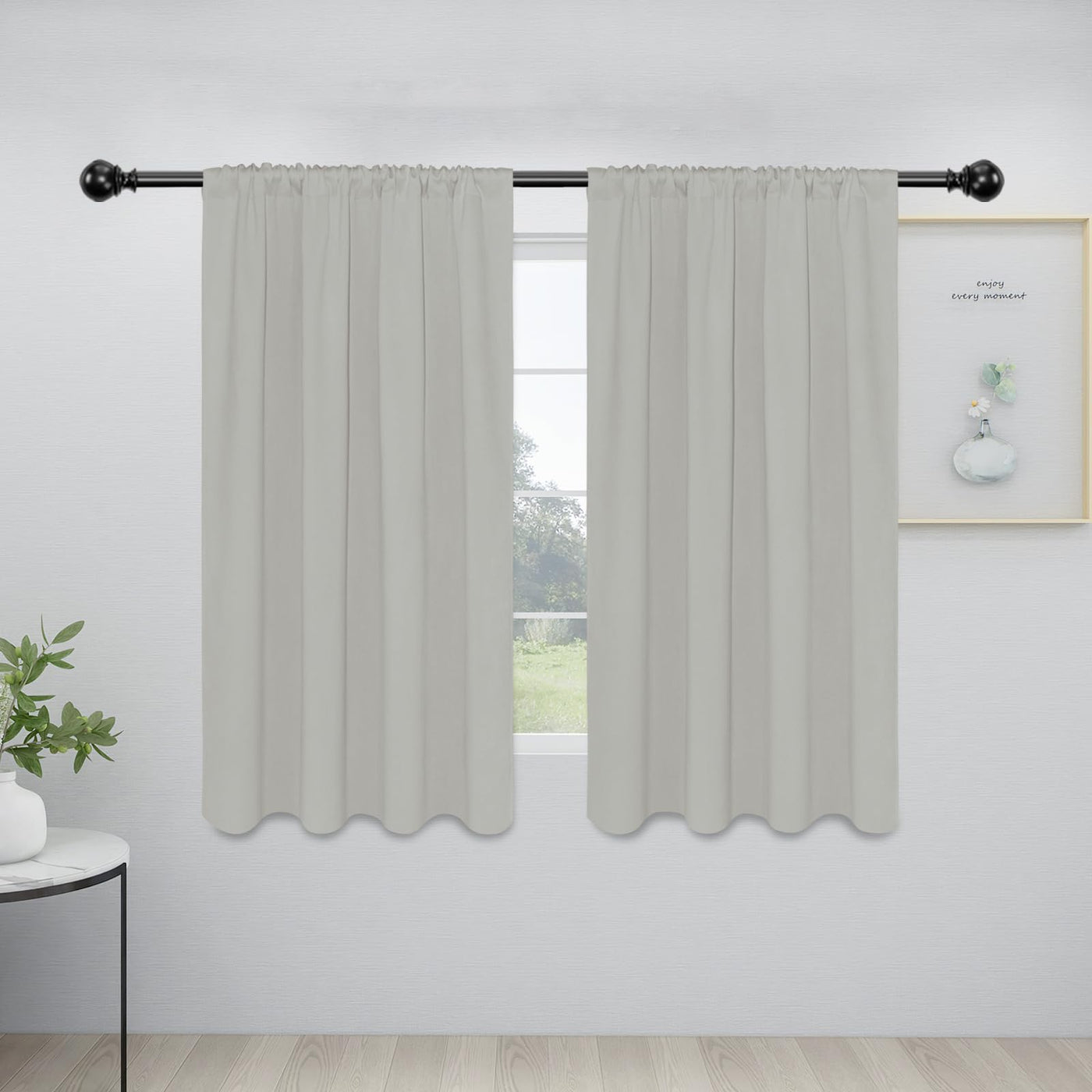 Easy-Going Rod Pocket Blackout Curtains For Bedroom, Room Darkening Window Curtains For Living Room, Thermal Insulated Noise Reduction Solid Window Drapes, 2 Panels(34X54 In, Greyish White)