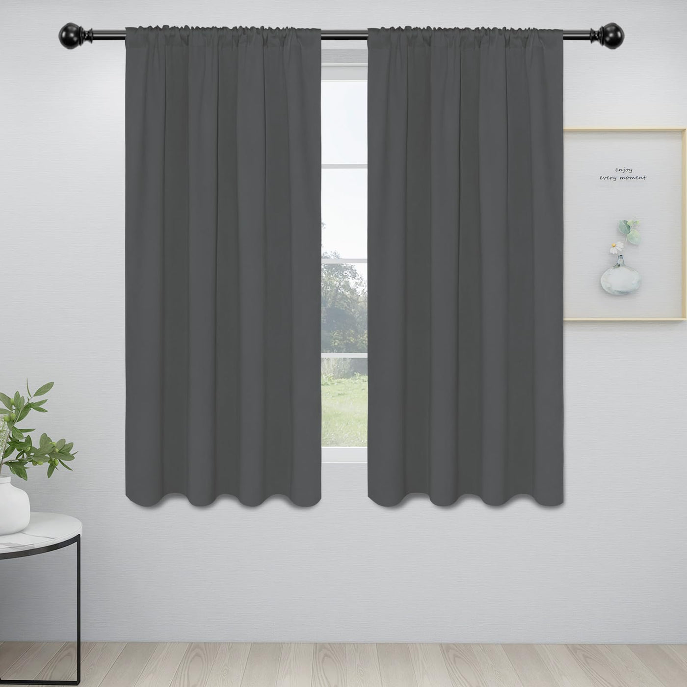Easy-Going Rod Pocket Blackout Curtains For Bedroom, Room Darkening Window Curtains For Living Room, Thermal Insulated Noise Reduction Solid Window Drapes, 2 Panels(34X63 In, Grey)