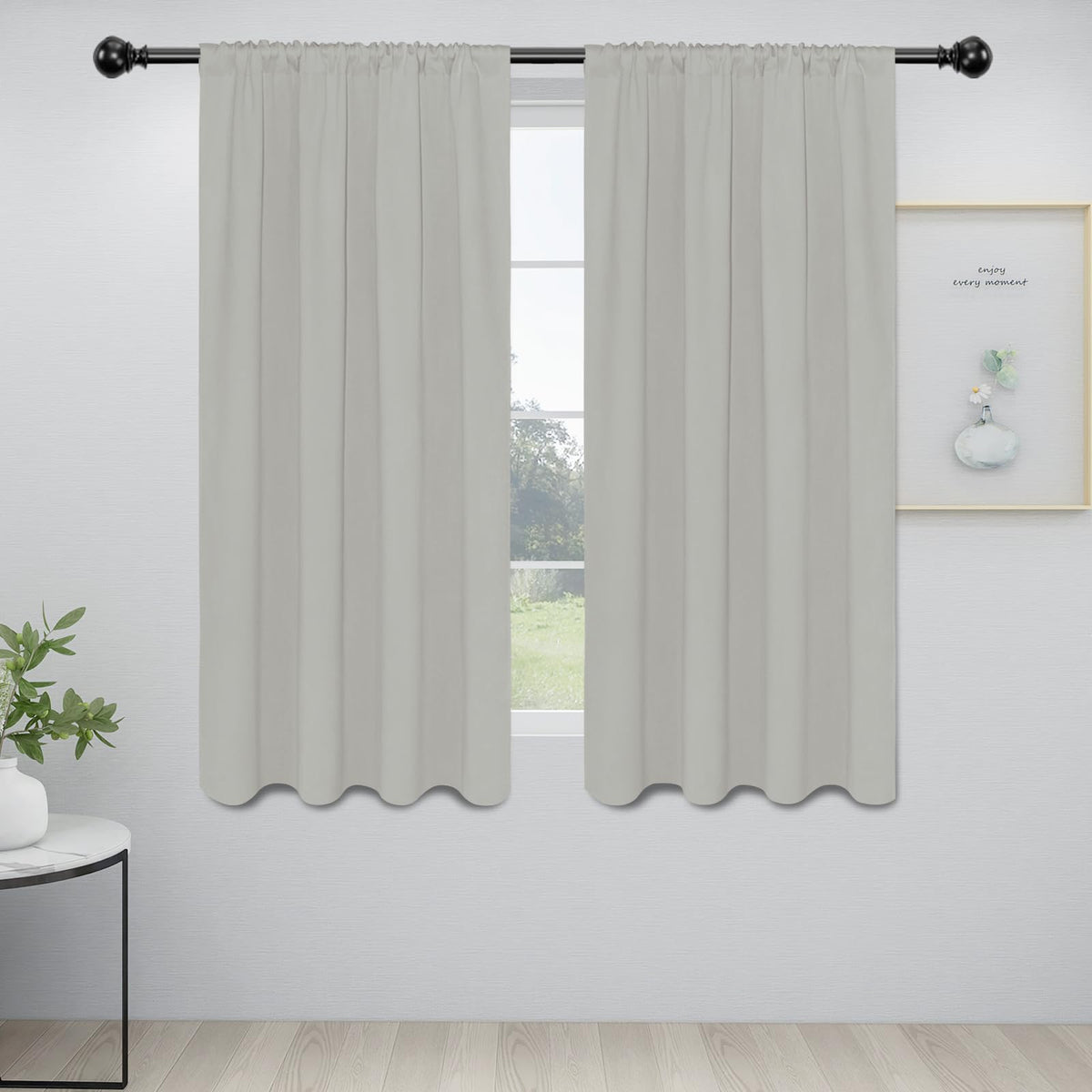 Easy-Going Rod Pocket Blackout Curtains For Bedroom, Room Darkening Window Curtains For Living Room, Thermal Insulated Noise Reduction Solid Window Drapes, 2 Panels(34X63 In, Greyish White)