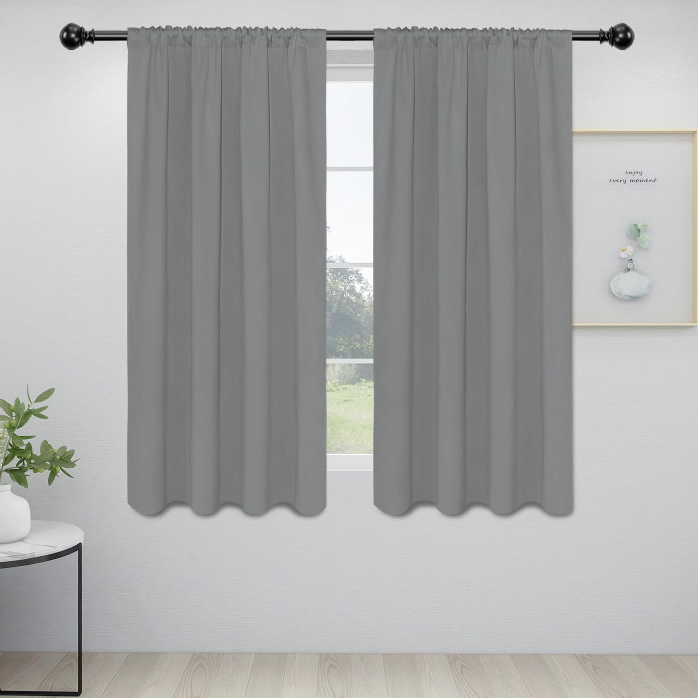 Easy-Going Rod Pocket Blackout Curtains For Bedroom, Room Darkening Window Curtains For Living Room, Thermal Insulated Noise Reduction Solid Window Drapes, 2 Panels(34X63 In, Light Gray)