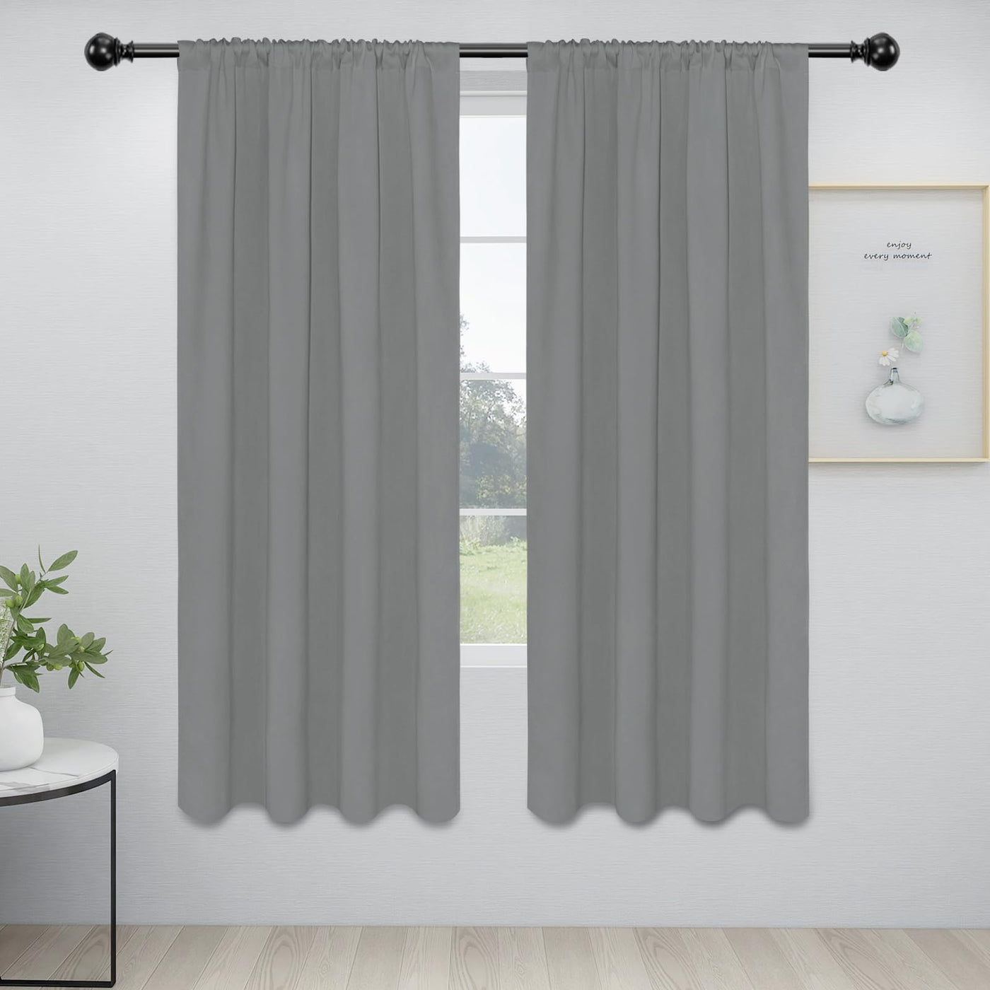 Easy-Going Rod Pocket Blackout Curtains For Bedroom, Room Darkening Window Curtains For Living Room, Thermal Insulated Noise Reduction Solid Window Drapes, 2 Panels(34X72 In, Light Gray)