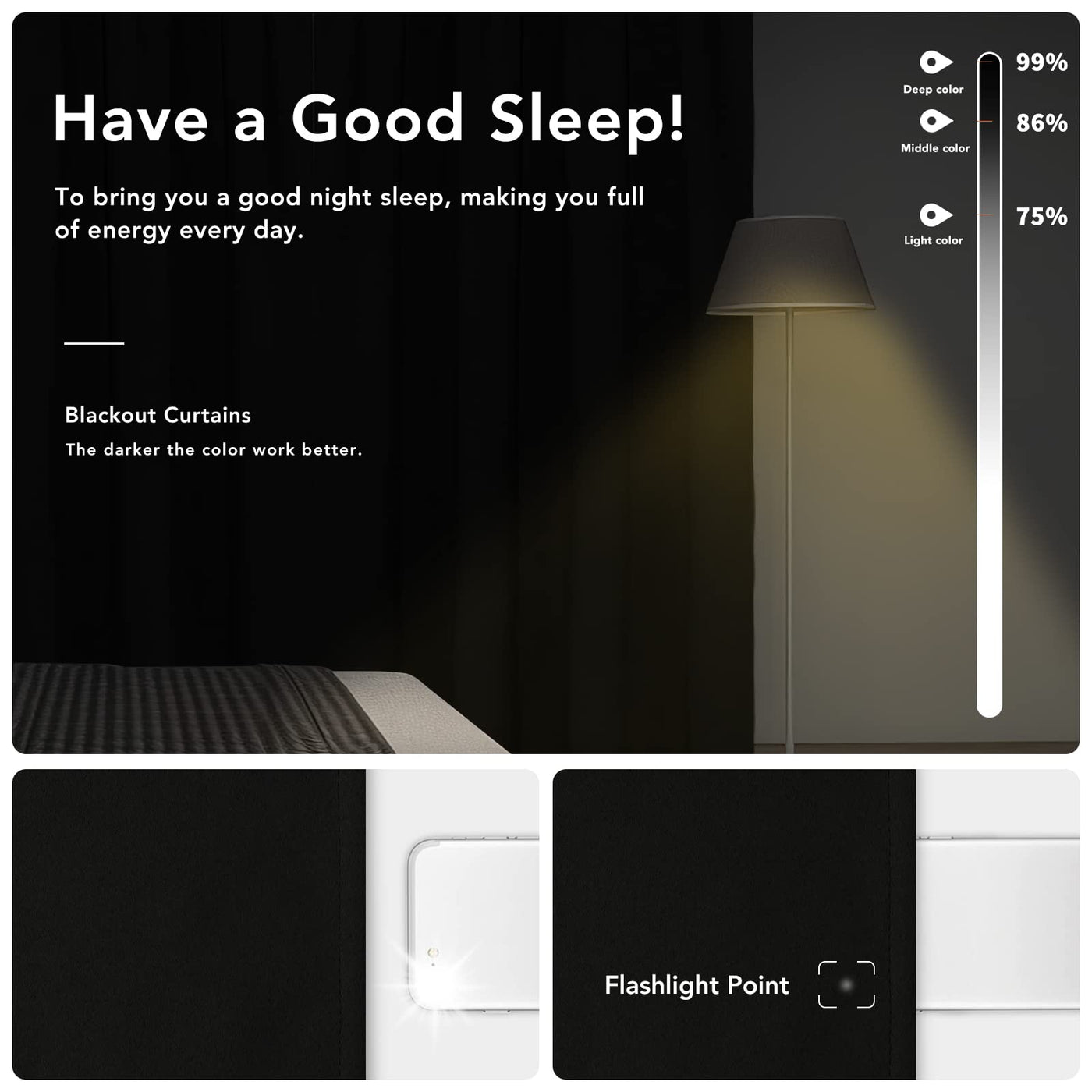 Q: Do these curtains provide blackout capabilities?A: Yes, these blackout curtains can block 60-70% of light, especially effective with darker colors, which helps to reduce noise and maintain privacy.