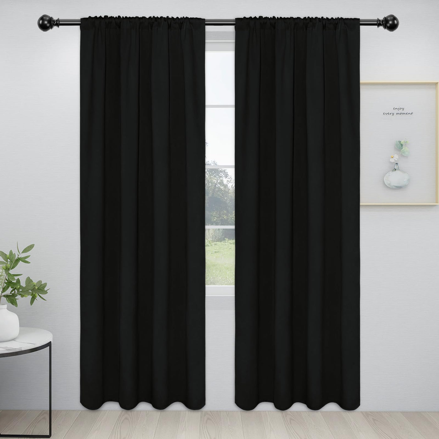 Easy-Going Rod Pocket Blackout Curtains For Bedroom, Room Darkening Window Curtains For Living Room, Thermal Insulated Noise Reduction Solid Window Drapes, 2 Panels(34X84 In, Black)