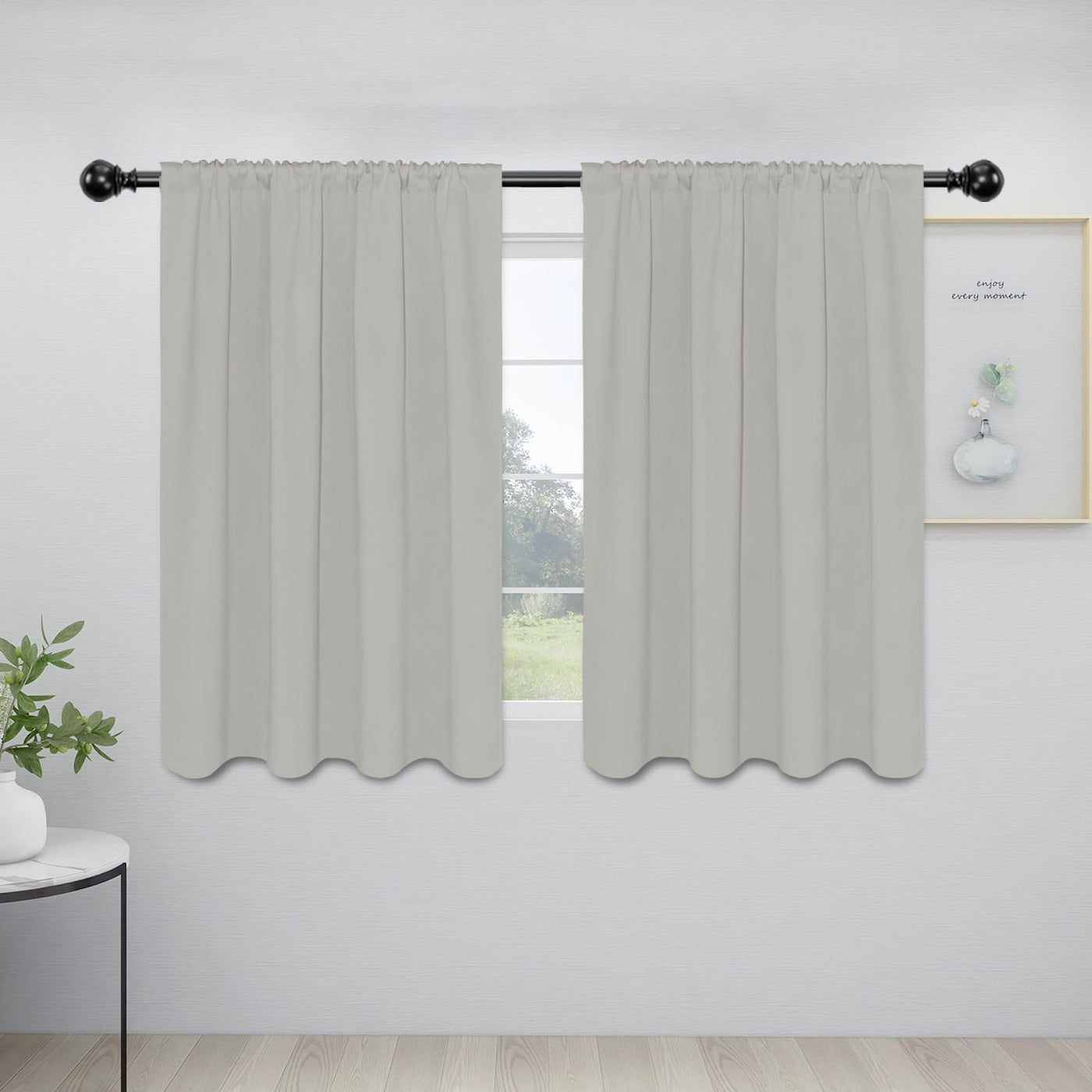 Easy-Going Rod Pocket Blackout Curtains For Bedroom, Room Darkening Window Curtains For Living Room, Thermal Insulated Noise Reduction Solid Window Drapes, 2 Panels(42X45 In, Greyish White)