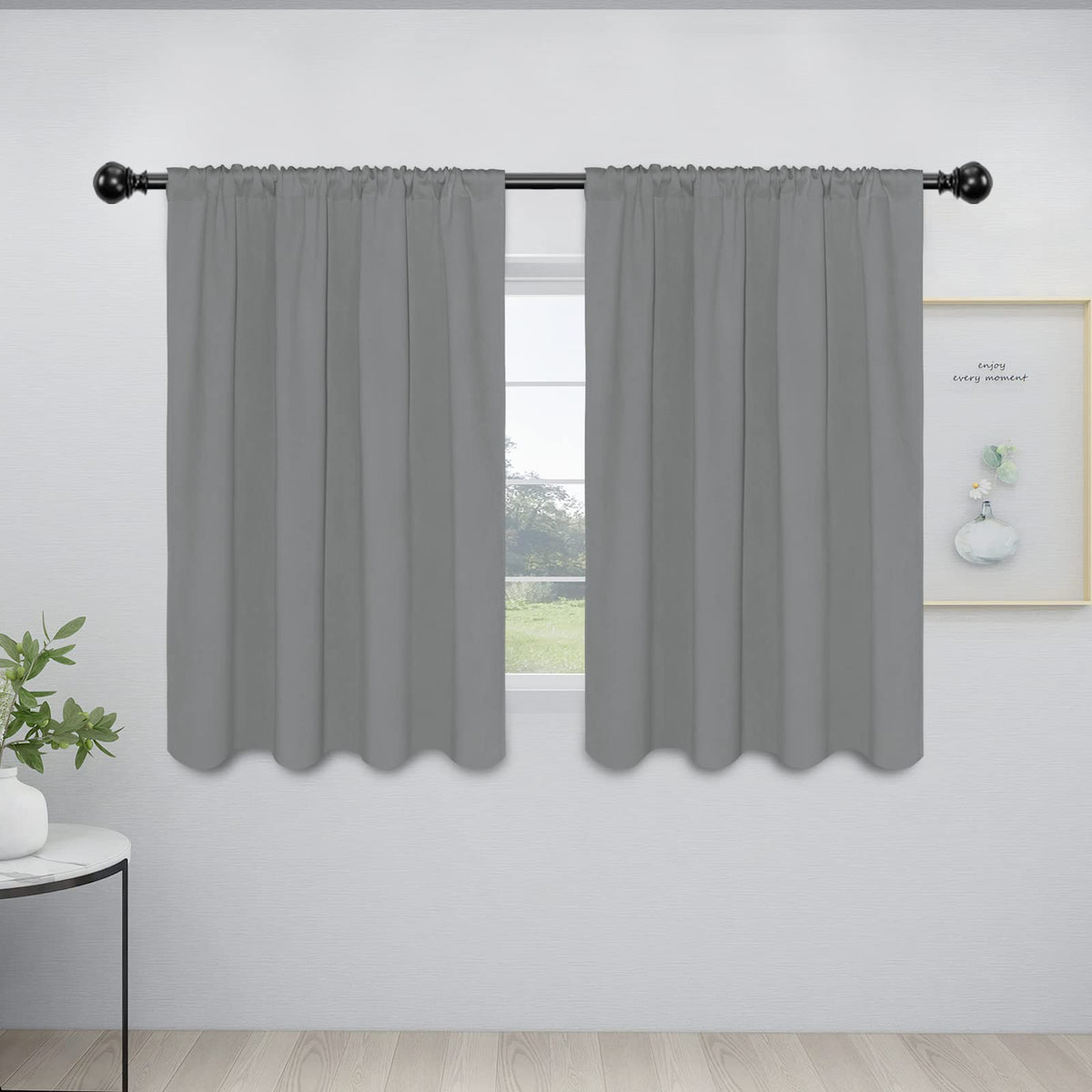 Easy-Going Rod Pocket Blackout Curtains For Bedroom, Room Darkening Window Curtains For Living Room, Thermal Insulated Noise Reduction Solid Window Drapes, 2 Panels(42X45 In, Light Gray)