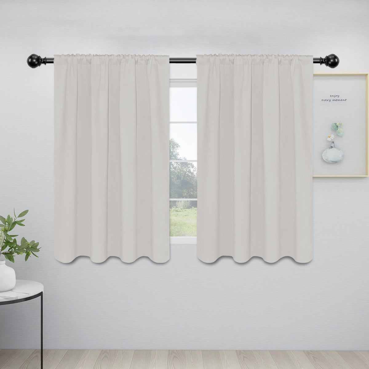 Easy-Going Rod Pocket Blackout Curtains For Bedroom, Room Darkening Window Curtains For Living Room, Thermal Insulated Noise Reduction Solid Window Drapes, 2 Panels(42X45 In, Light Linen)