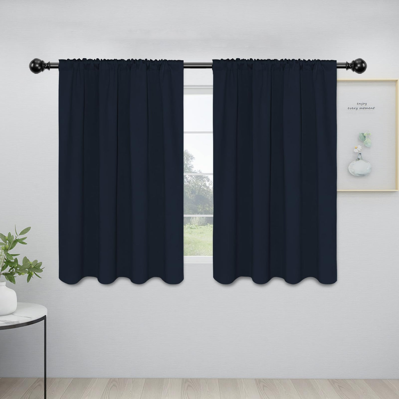Easy-Going Rod Pocket Blackout Curtains For Bedroom, Room Darkening Window Curtains For Living Room, Thermal Insulated Noise Reduction Solid Window Drapes, 2 Panels(42X45 In, Navy)