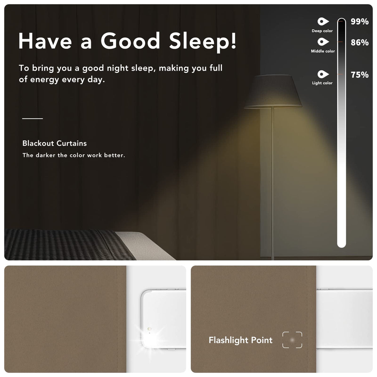 Q: How much sunlight do these blackout curtains block?A: These blackout curtains can block out 85%-99% of sunlight and UV rays, making them an excellent choice for creating a dark and cozy environment in your bedroom or living room.