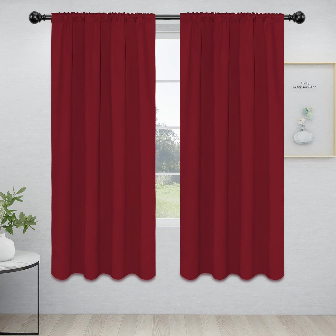 Easy-Going Rod Pocket Blackout Curtains For Bedroom, Room Darkening Window Curtains For Living Room, Thermal Insulated Noise Reduction Solid Window Drapes, 2 Panels(42X72 In, Christmas Red)