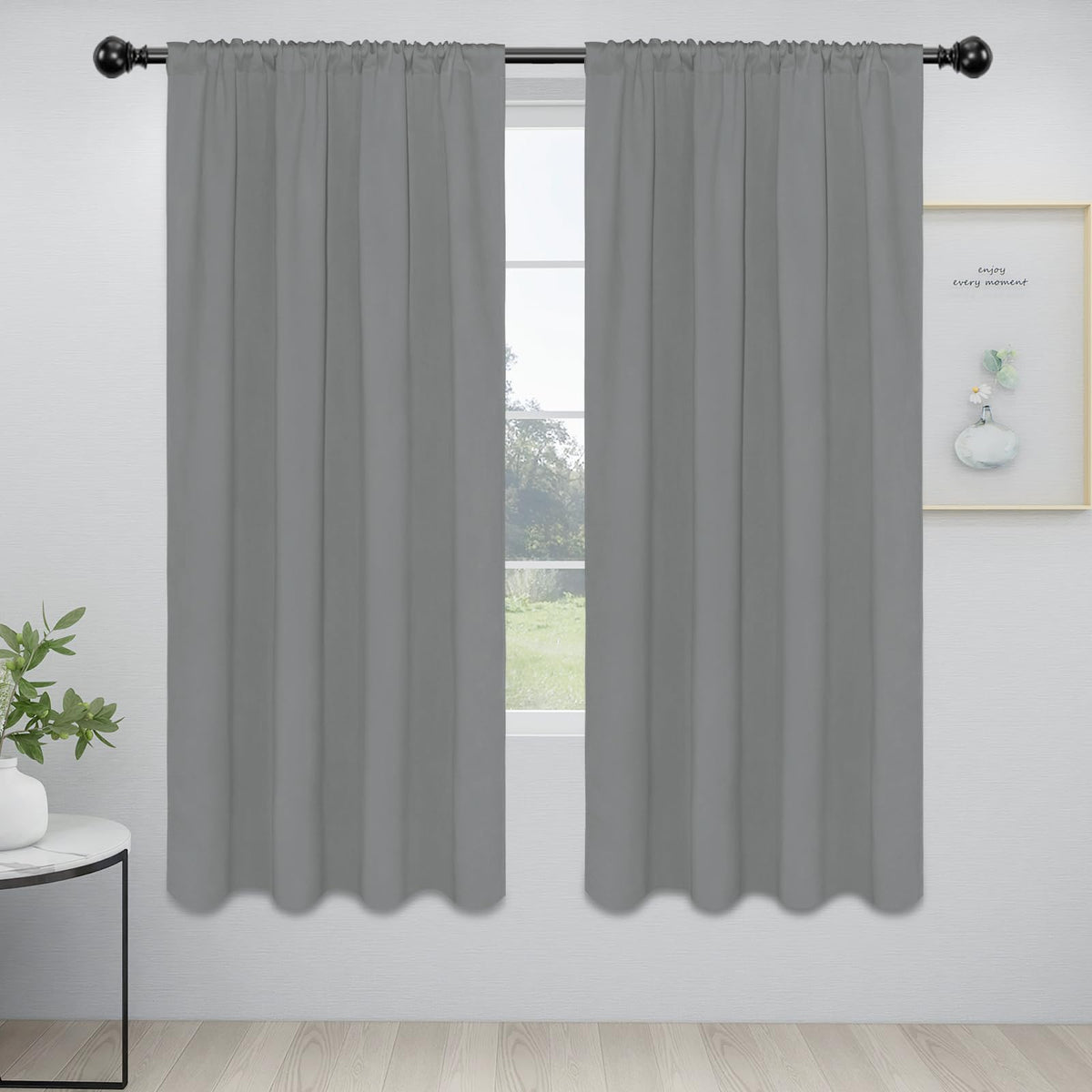 Easy-Going Rod Pocket Blackout Curtains For Bedroom, Room Darkening Window Curtains For Living Room, Thermal Insulated Noise Reduction Solid Window Drapes, 2 Panels(42X72 In, Light Gray)