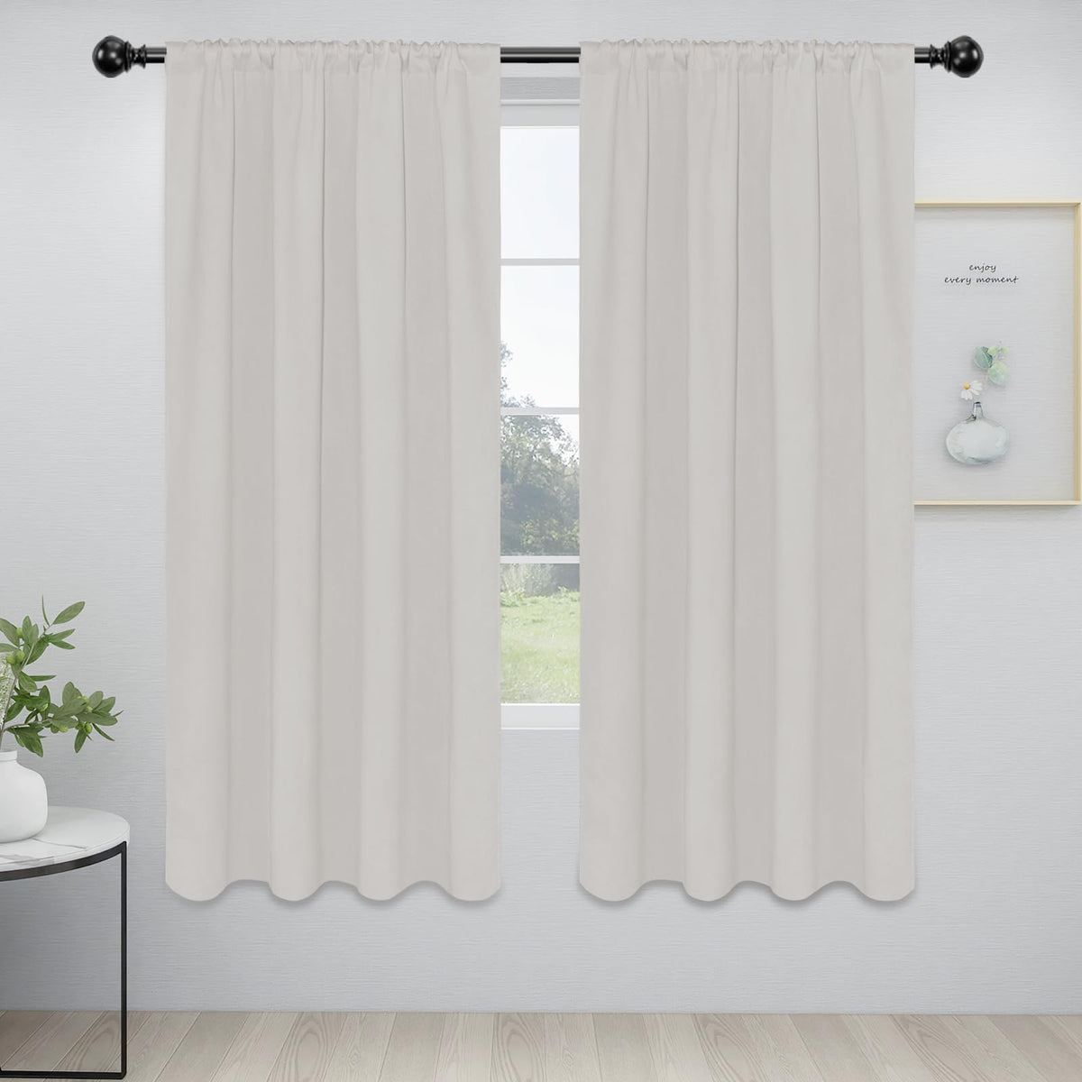 Easy-Going Rod Pocket Blackout Curtains For Bedroom, Room Darkening Window Curtains For Living Room, Thermal Insulated Noise Reduction Solid Window Drapes, 2 Panels(42X72 In, Light Linen)