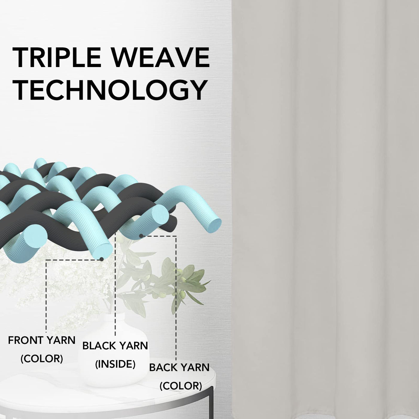 Q: How do these curtains help with energy efficiency?A: The curtains feature a triple weave design that blocks out light and heat, which can help lower heating and cooling costs by preventing drafts and sunlight from entering your home.