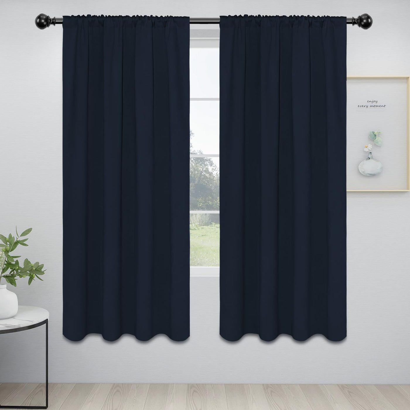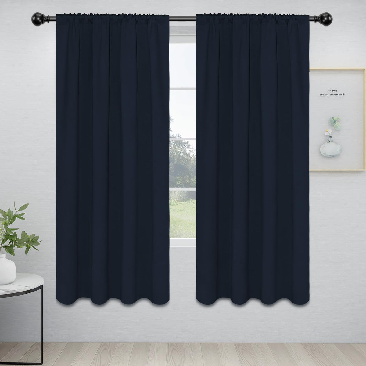 Easy-Going Rod Pocket Blackout Curtains For Bedroom, Room Darkening Window Curtains For Living Room, Thermal Insulated Noise Reduction Solid Window Drapes, 2 Panels(42X72 In, Navy)