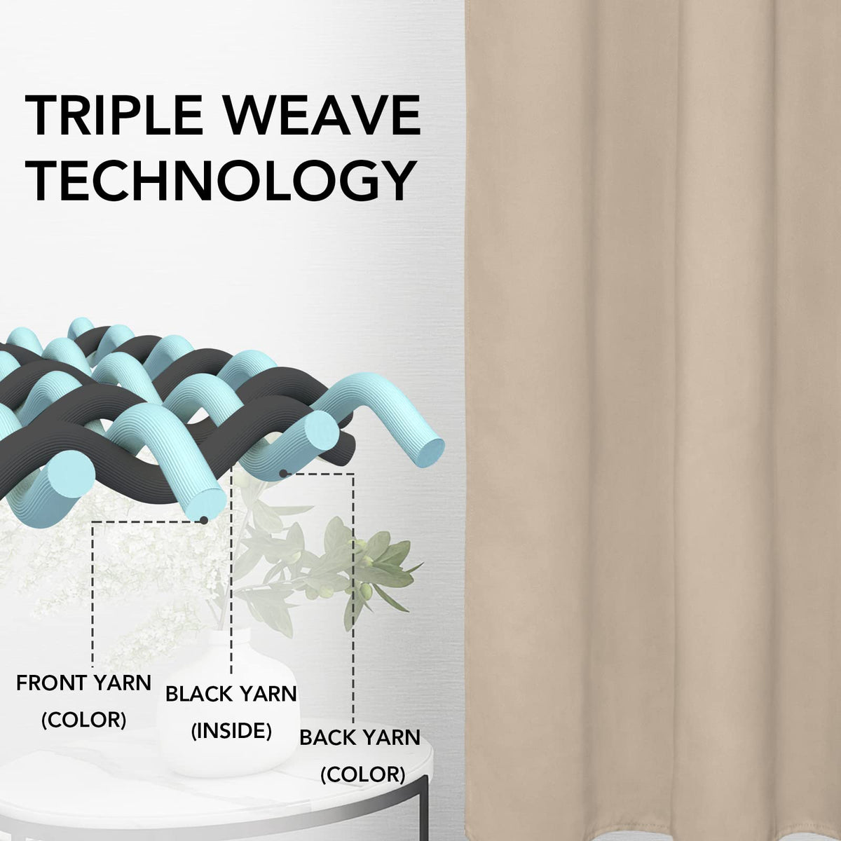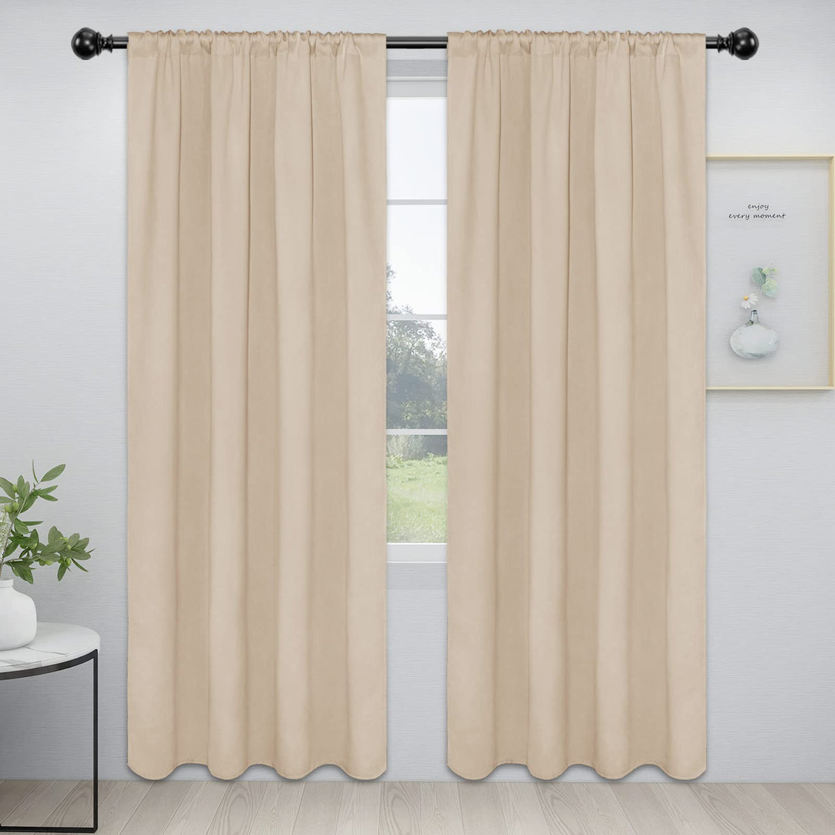 Easy-Going Rod Pocket Blackout Curtains For Bedroom, Room Darkening Window Curtains For Living Room, Thermal Insulated Noise Reduction Solid Window Drapes, 2 Panels(42X84 In, Beige)