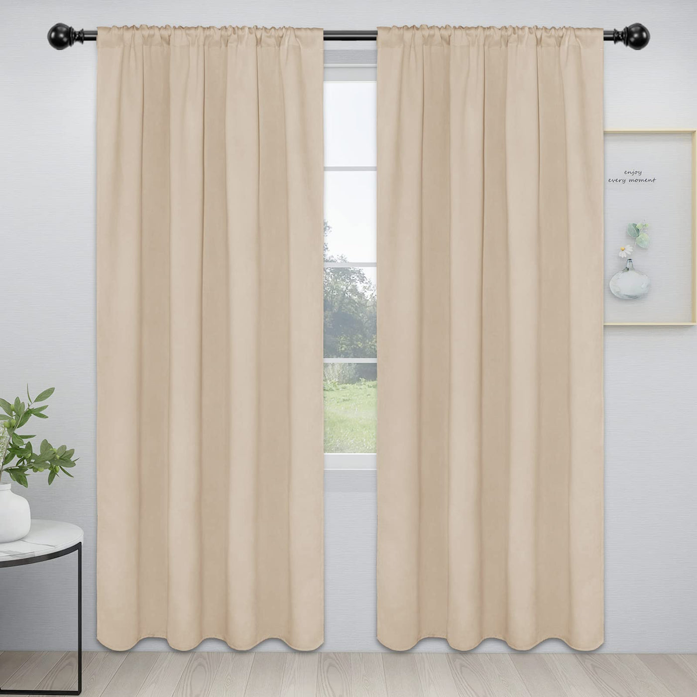 Easy-Going Rod Pocket Blackout Curtains For Bedroom, Room Darkening Window Curtains For Living Room, Thermal Insulated Noise Reduction Solid Window Drapes, 2 Panels(52X84 In, Beige)