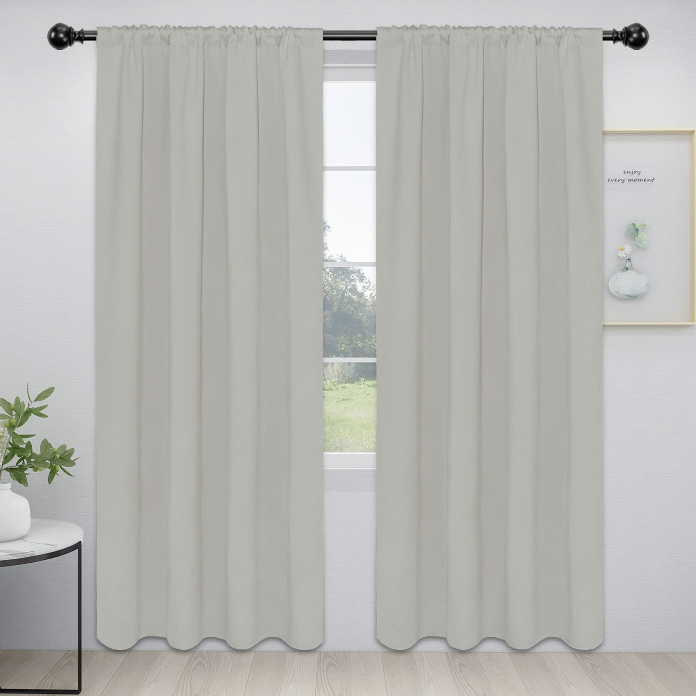 Easy-Going Rod Pocket Blackout Curtains For Bedroom, Room Darkening Window Curtains For Living Room, Thermal Insulated Noise Reduction Solid Window Drapes, 2 Panels(52X96 In, Greyish White)
