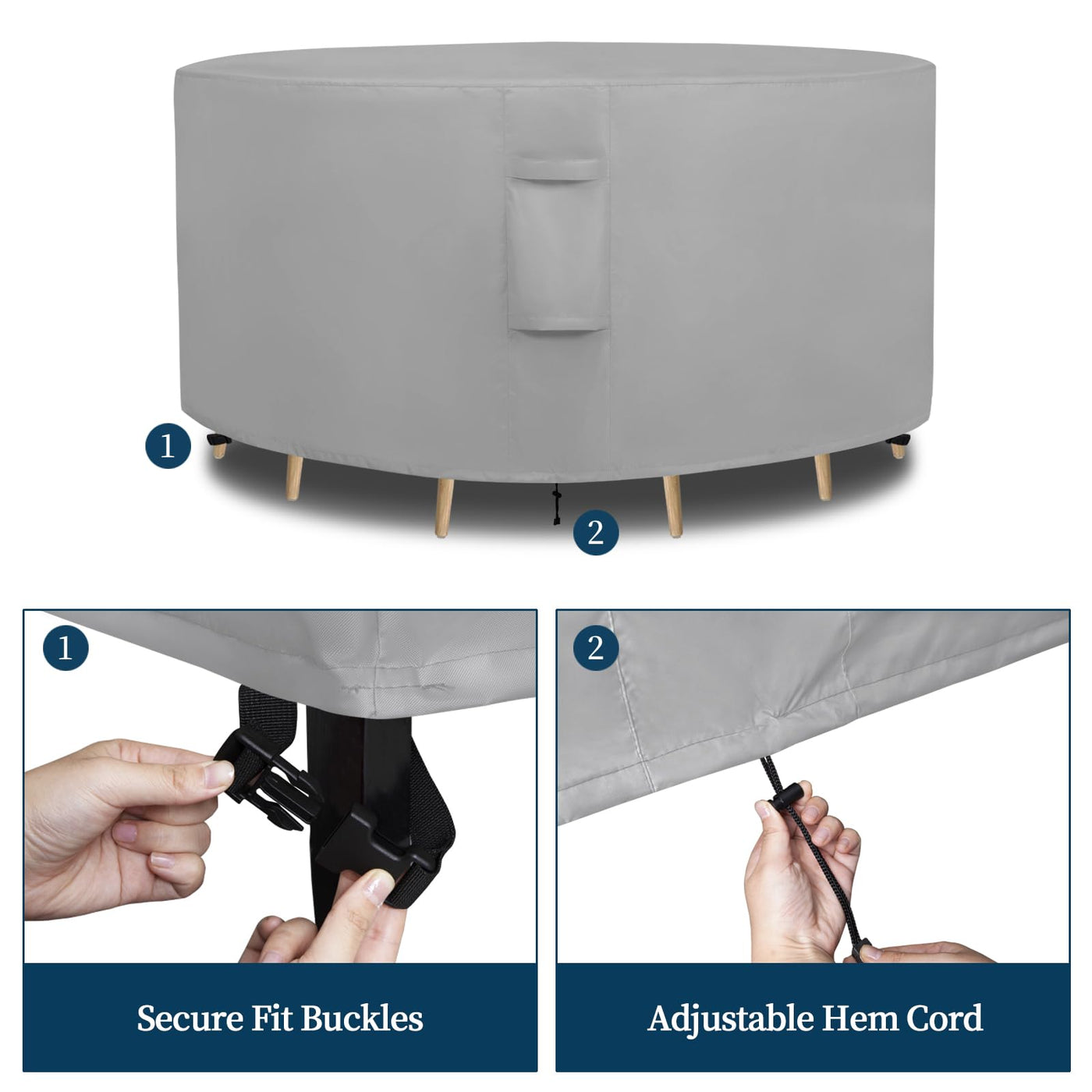 4.Plastic buckles and hem cord string allows for a tight and custom-like fit, especially during high wind and severe weather.