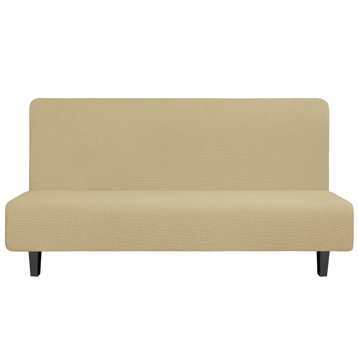 Easy-Going Stretch Futon Slipcover Armless Futon Bed Cover Furniture Protector Without Armrests With Elastic Bottom For Kids, Soft Jacquard Fabric Small Checks (Large, Beige)