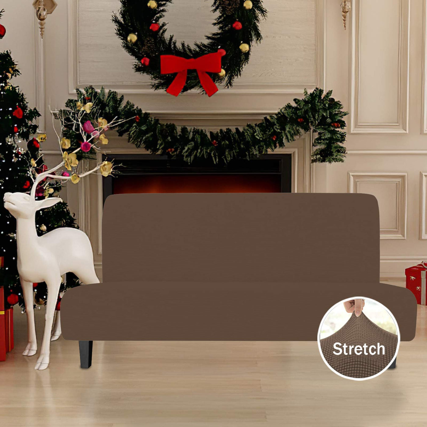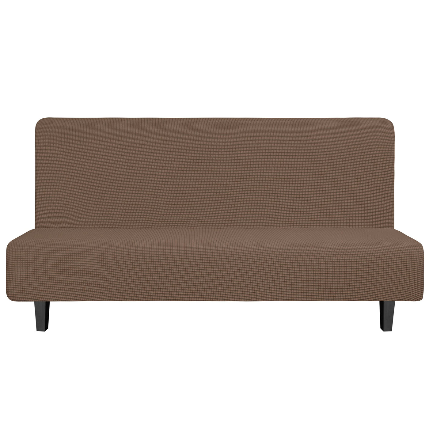 Easy-Going Stretch Futon Slipcover Armless Futon Bed Cover Furniture Protector Without Armrests With Elastic Bottom For Kids, Soft Jacquard Fabric Small Checks (Large, Brown)