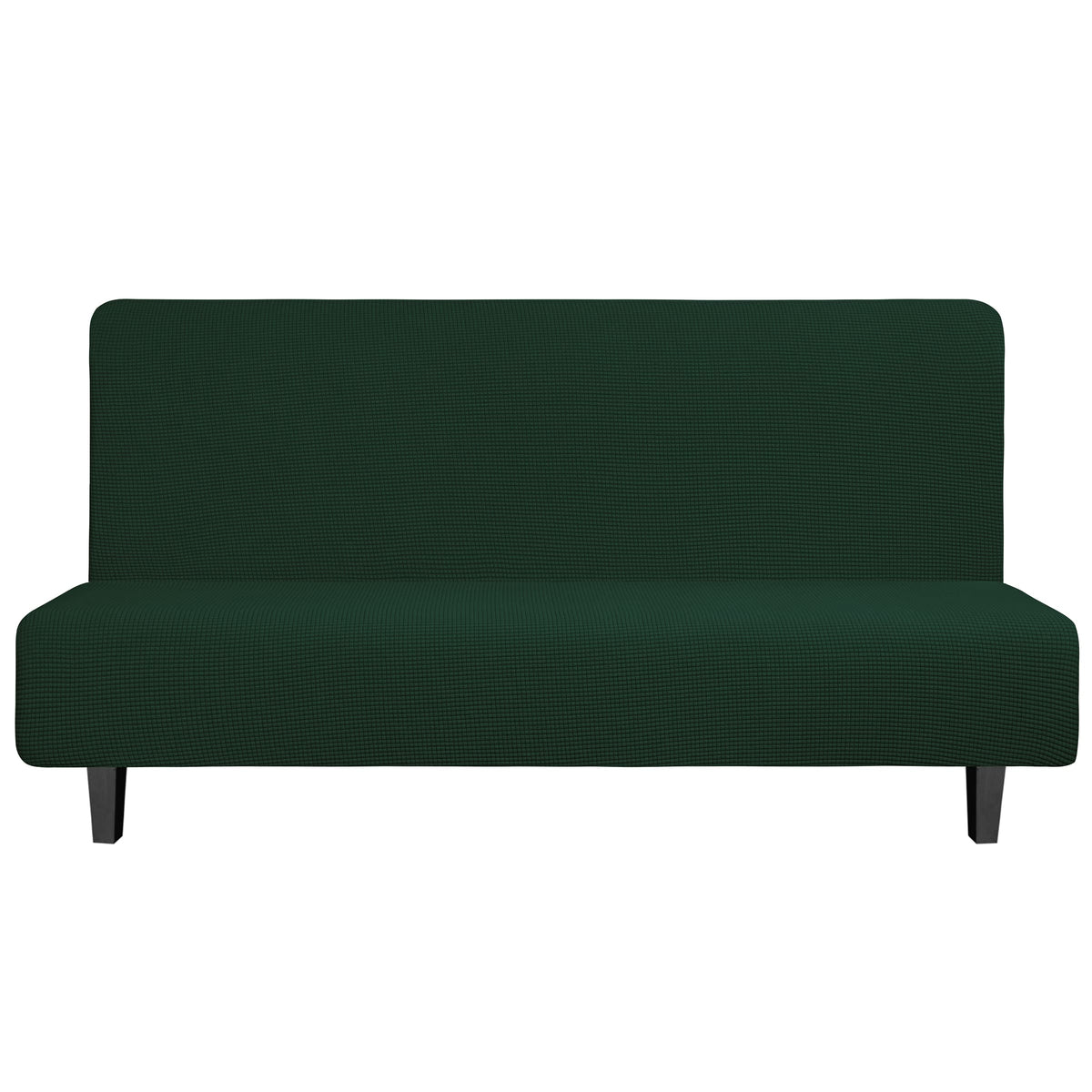 Easy-Going Stretch Futon Slipcover Armless Futon Bed Cover Furniture Protector Without Armrests With Elastic Bottom For Kids, Soft Jacquard Fabric Small Checks (Large, Dark Green)