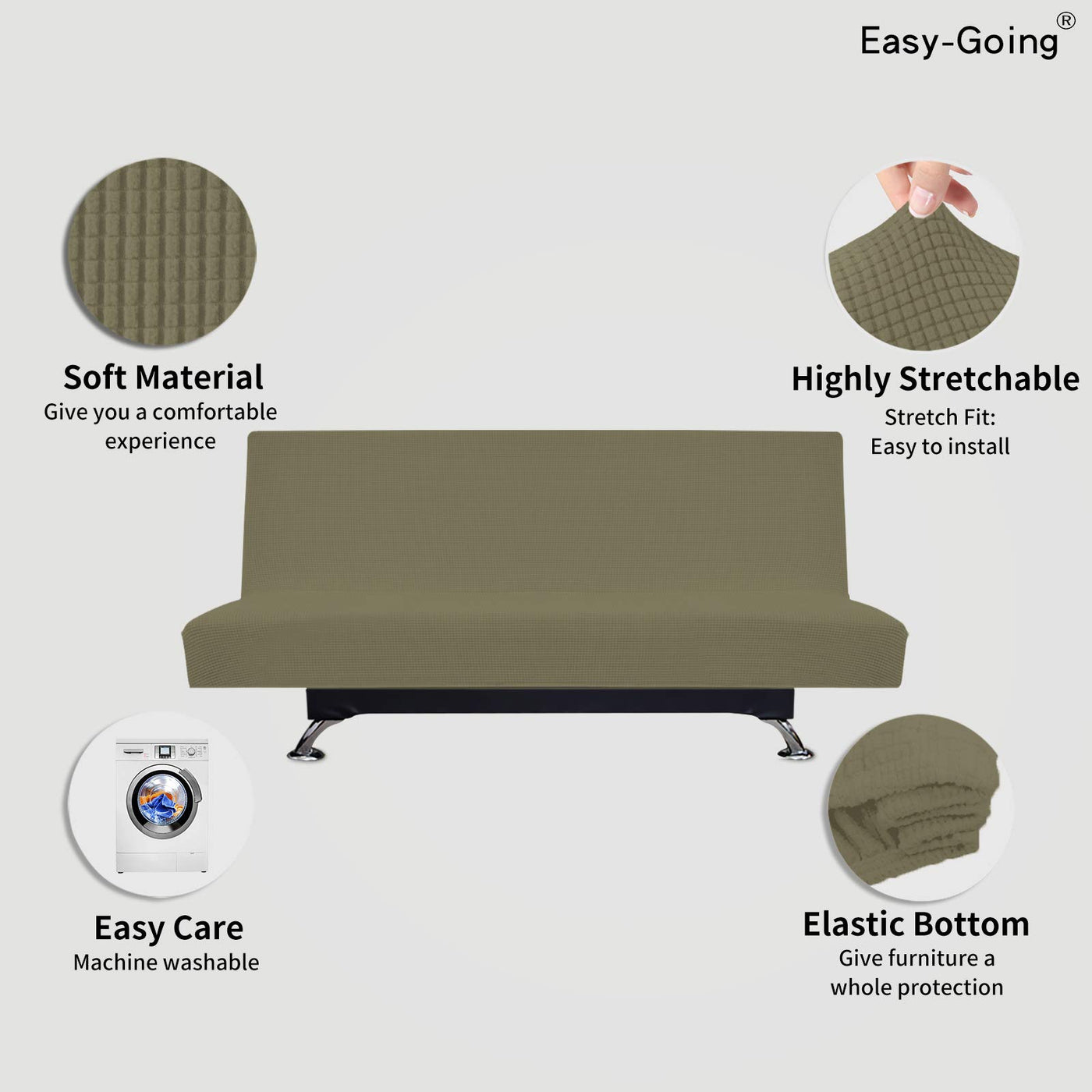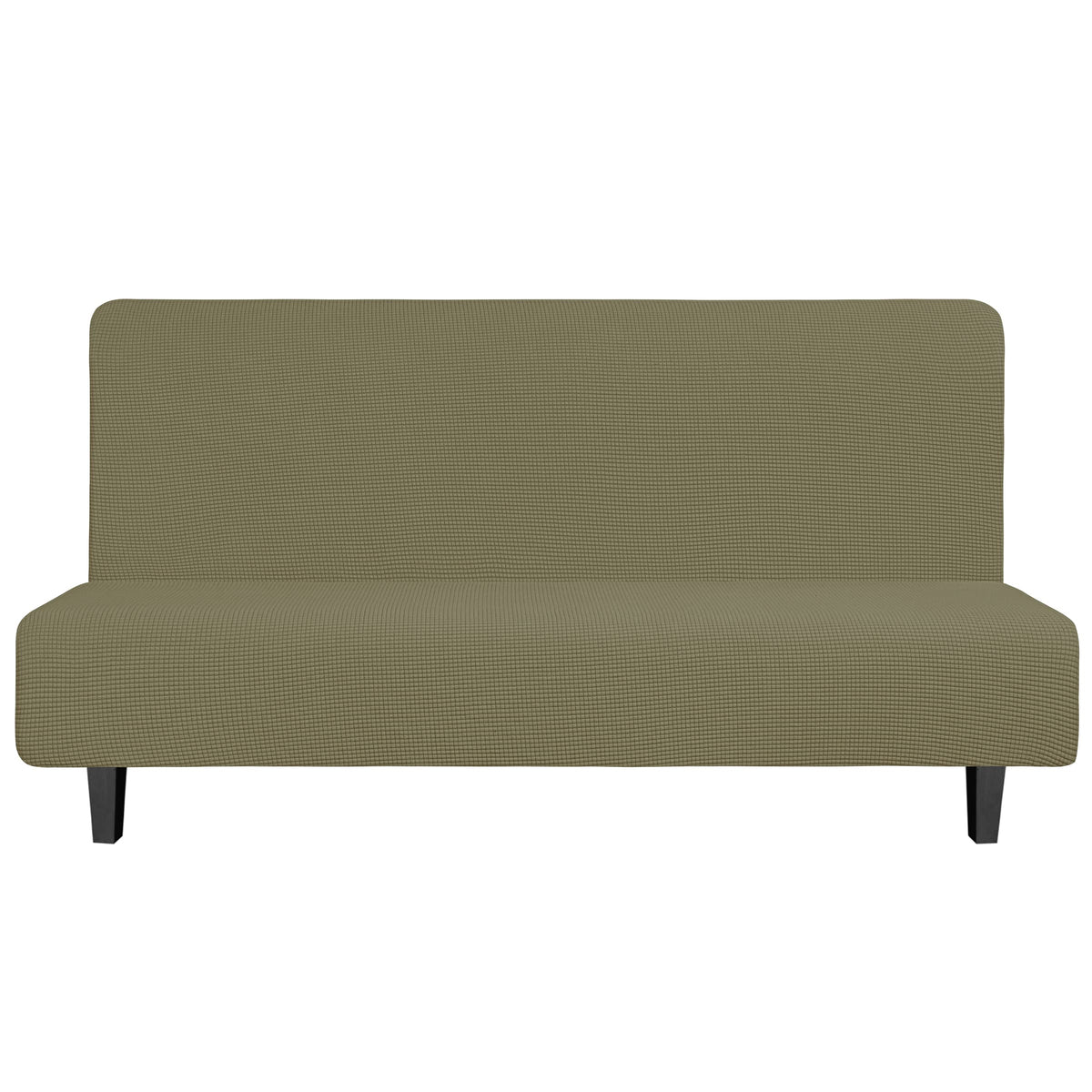 Easy-Going Stretch Futon Slipcover Armless Futon Bed Cover Furniture Protector Without Armrests With Elastic Bottom For Kids, Soft Jacquard Fabric Small Checks (Large, Khaki)