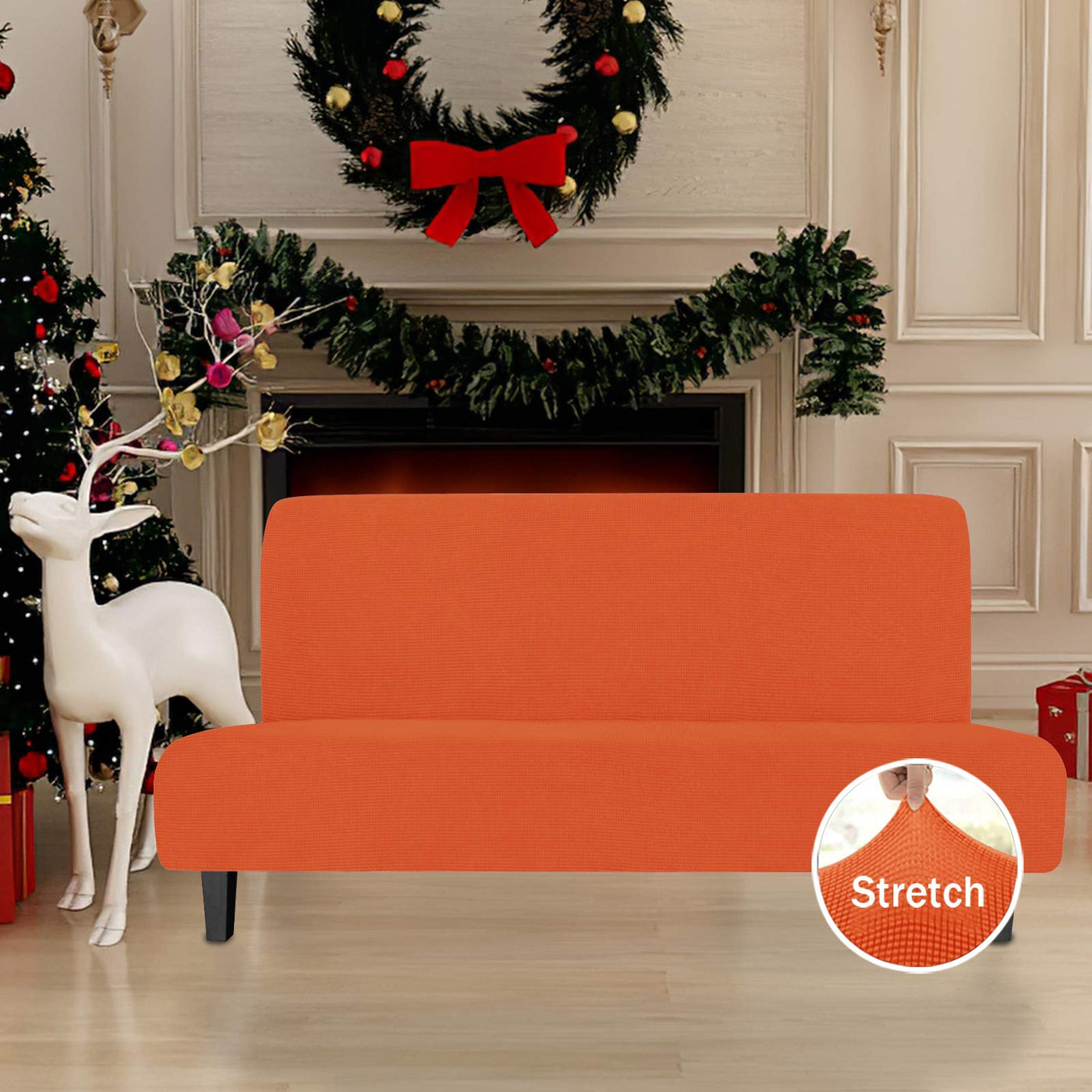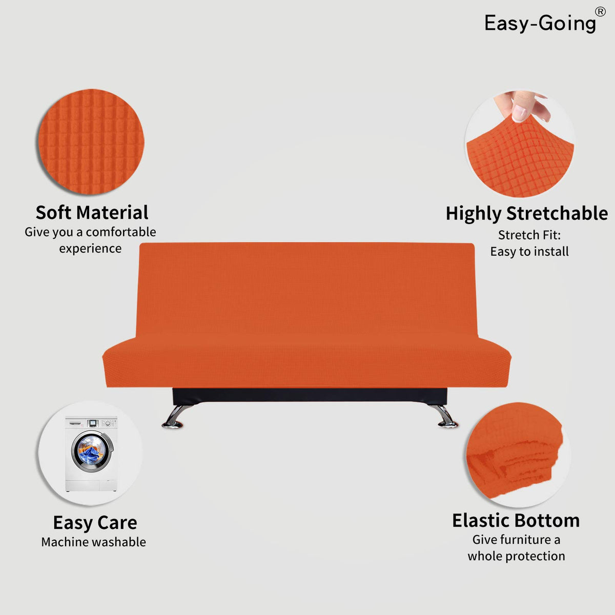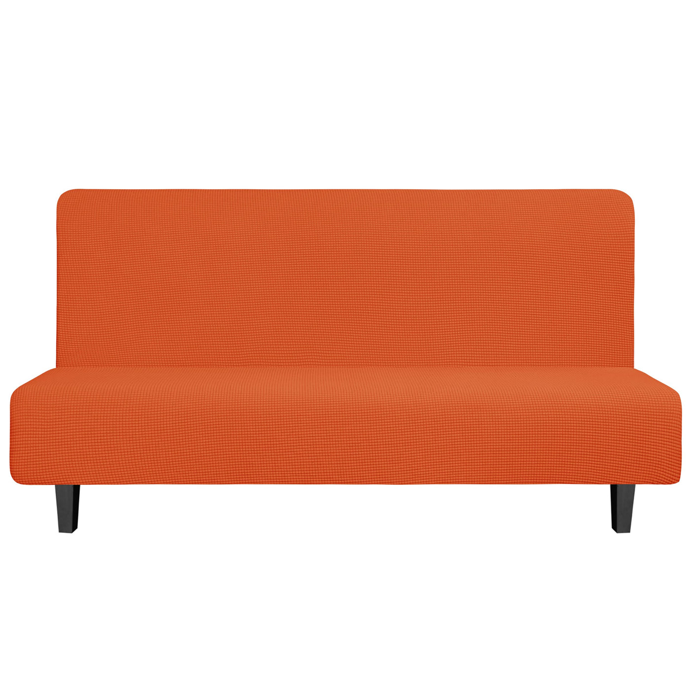 Easy-Going Stretch Futon Slipcover Armless Futon Bed Cover Furniture Protector Without Armrests With Elastic Bottom For Kids, Soft Jacquard Fabric Small Checks (Large, Orange)