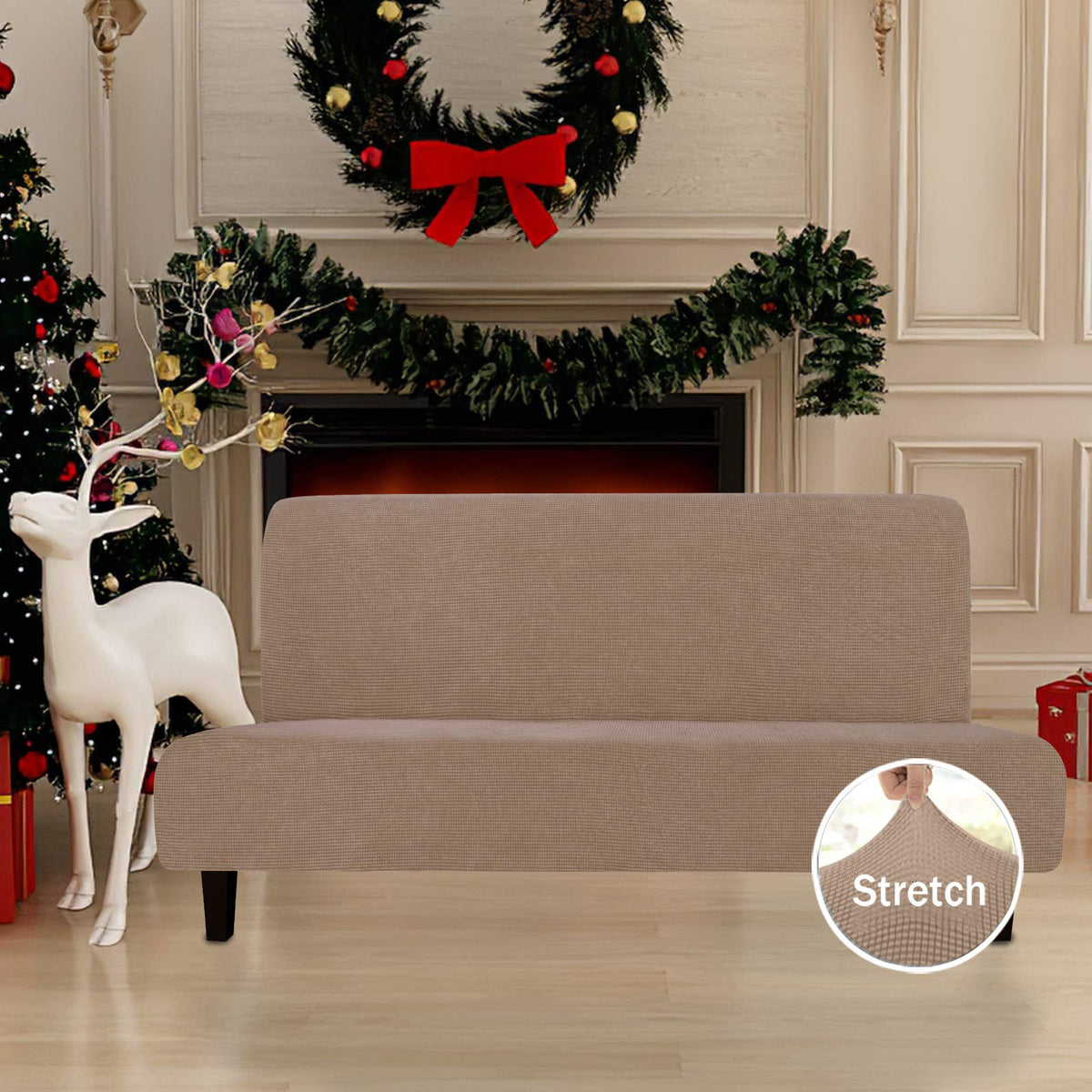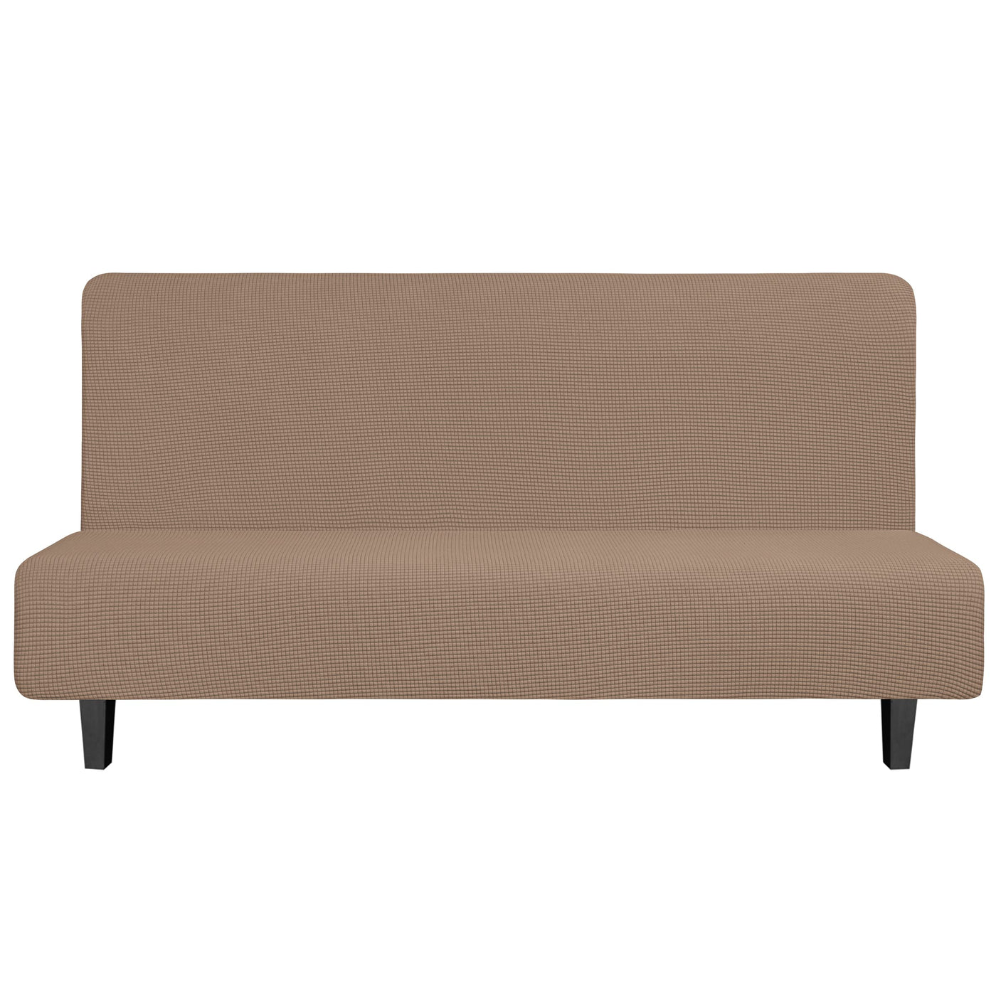 Easy-Going Stretch Futon Slipcover Armless Sofa Cover Furniture Protector Without Armrests Slipcover Soft With Elastic Bottom For Kids, Spandex Jacquard Fabric Small Checks(Futon,Camel)
