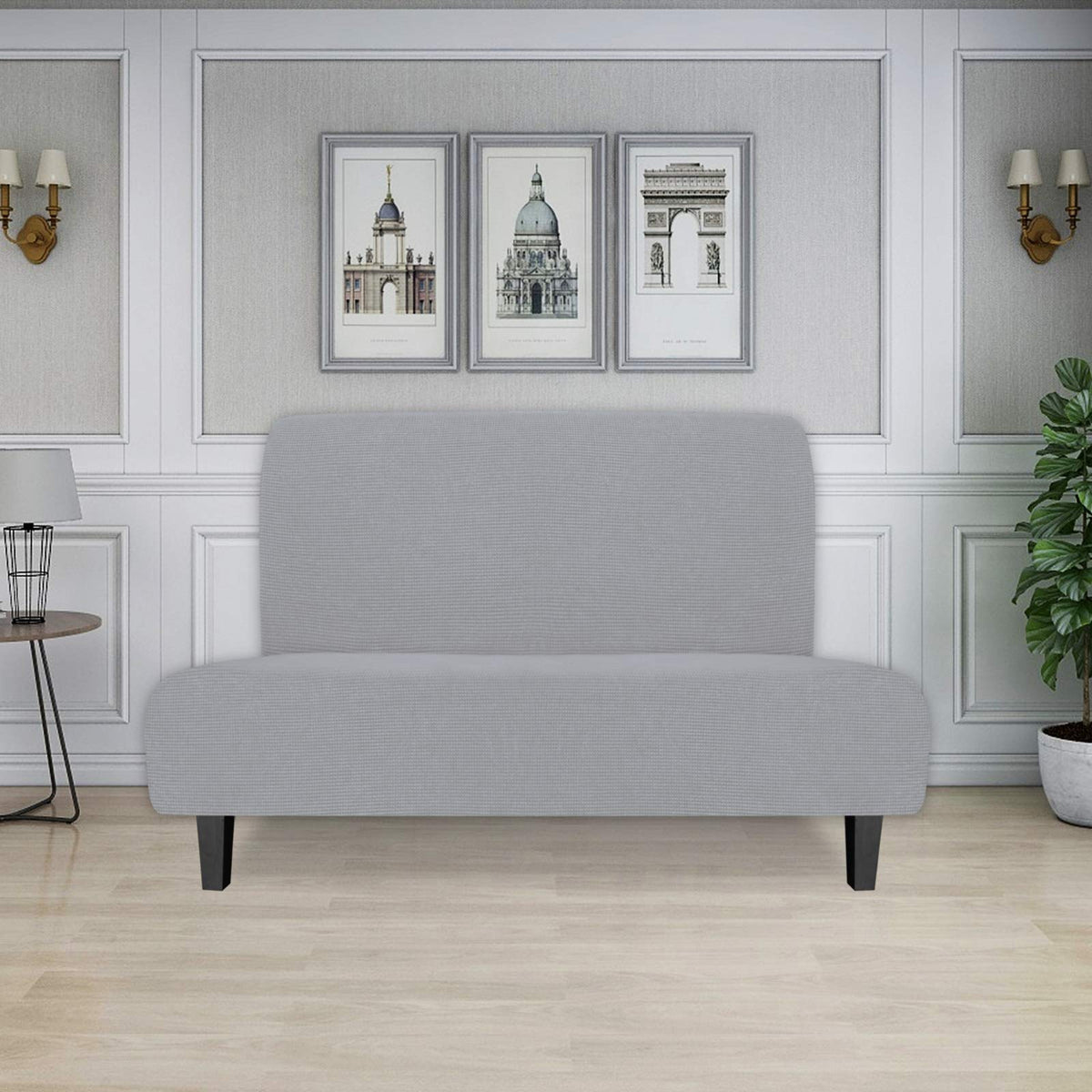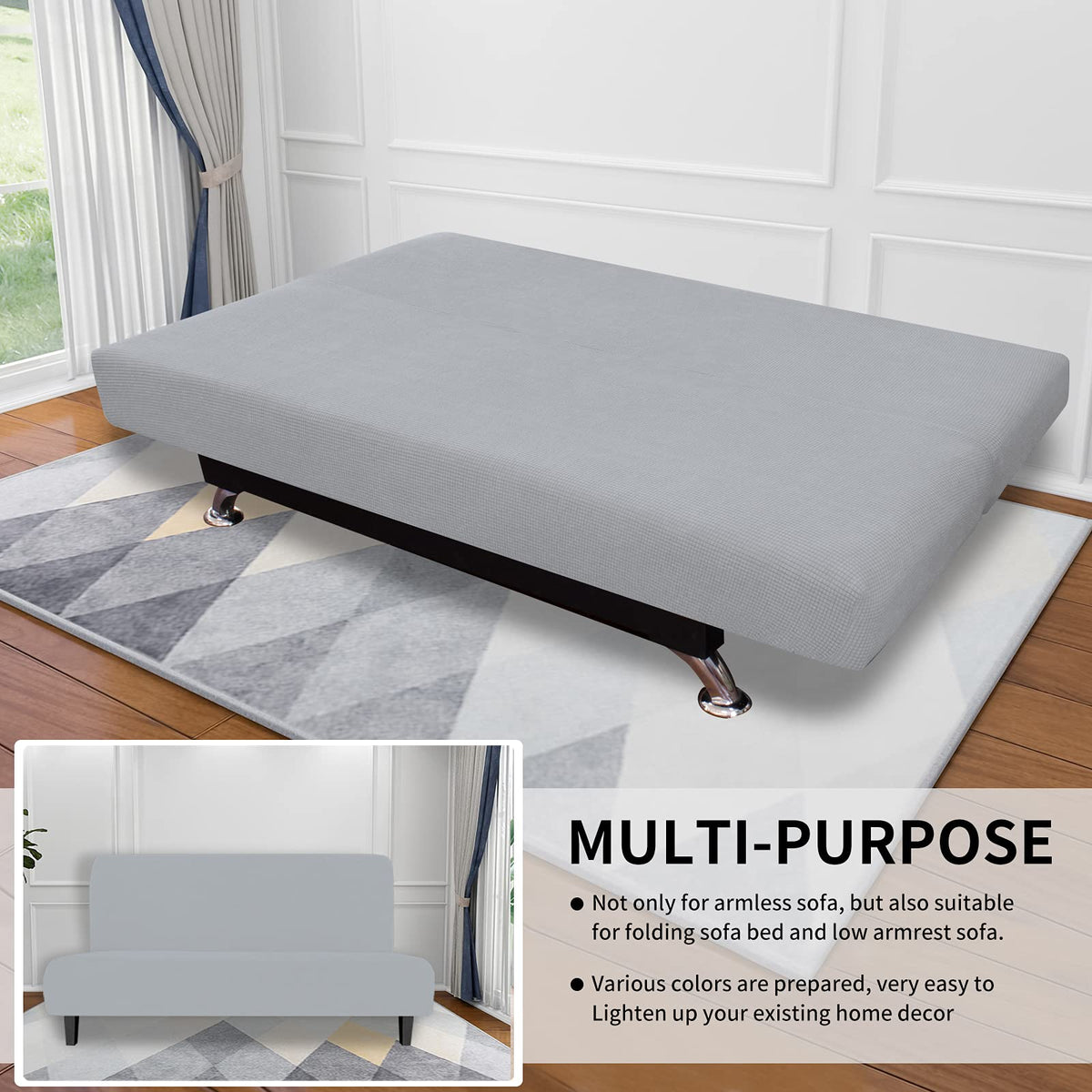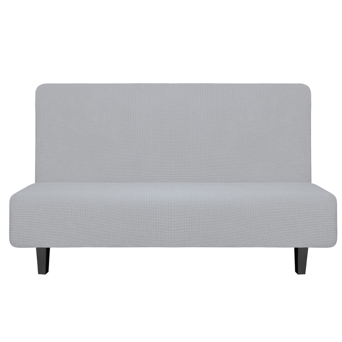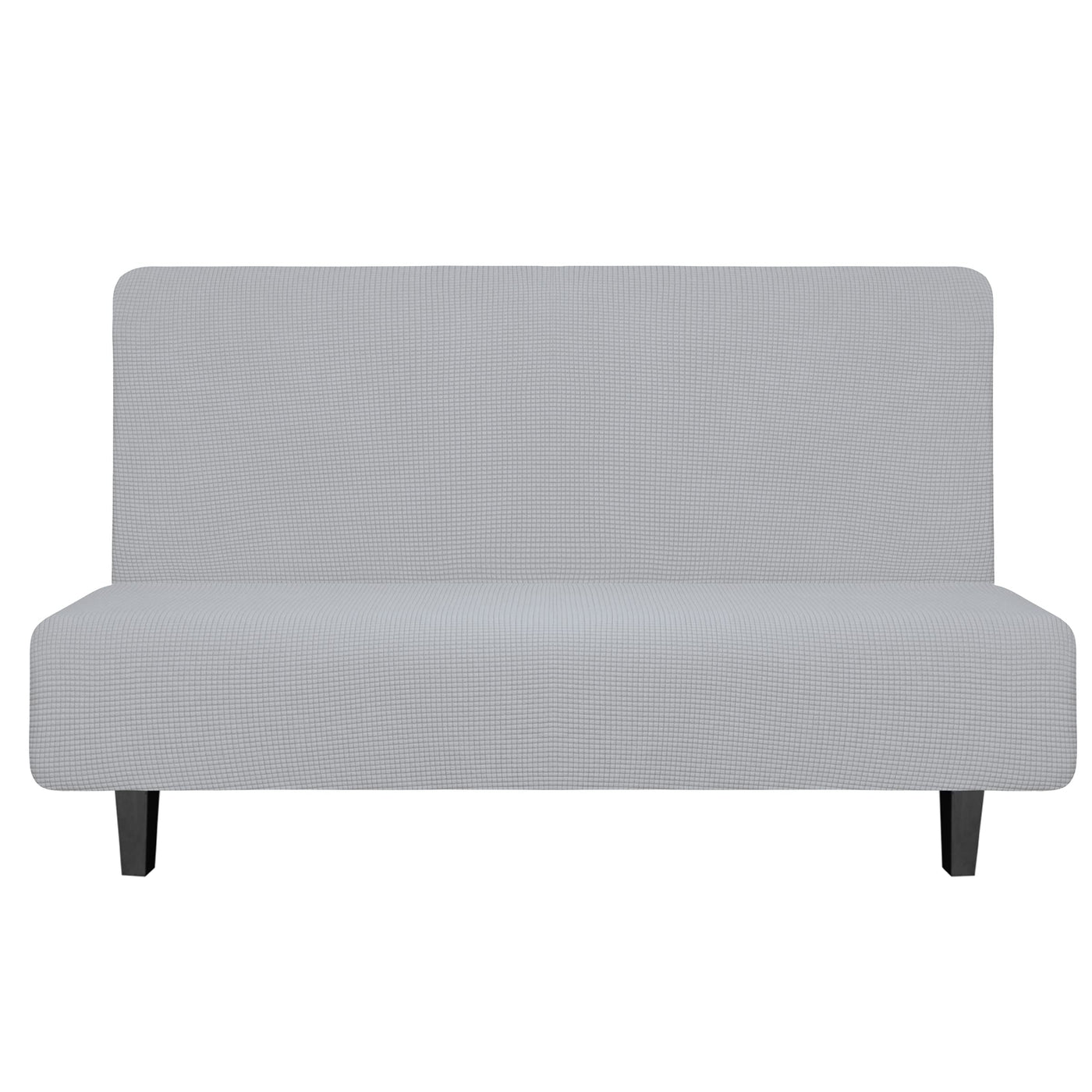 Easy-Going Stretch Futon Sofa Slipcover Armless Sofa Bed Cover Furniture Protector Without Armrests With Elastic Bottom For Kids,Soft Jacquard Fabric Small Checks(Medium Futon,Silver Gray