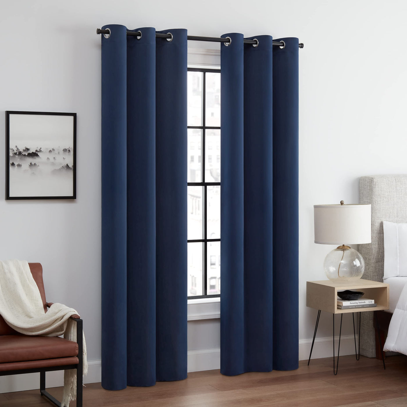 Eclipse Andover Solid Tripleweave Thermal Blackout Grommet Curtains For Bedroom (2 Panels), 42 In X 108 In, Navy
