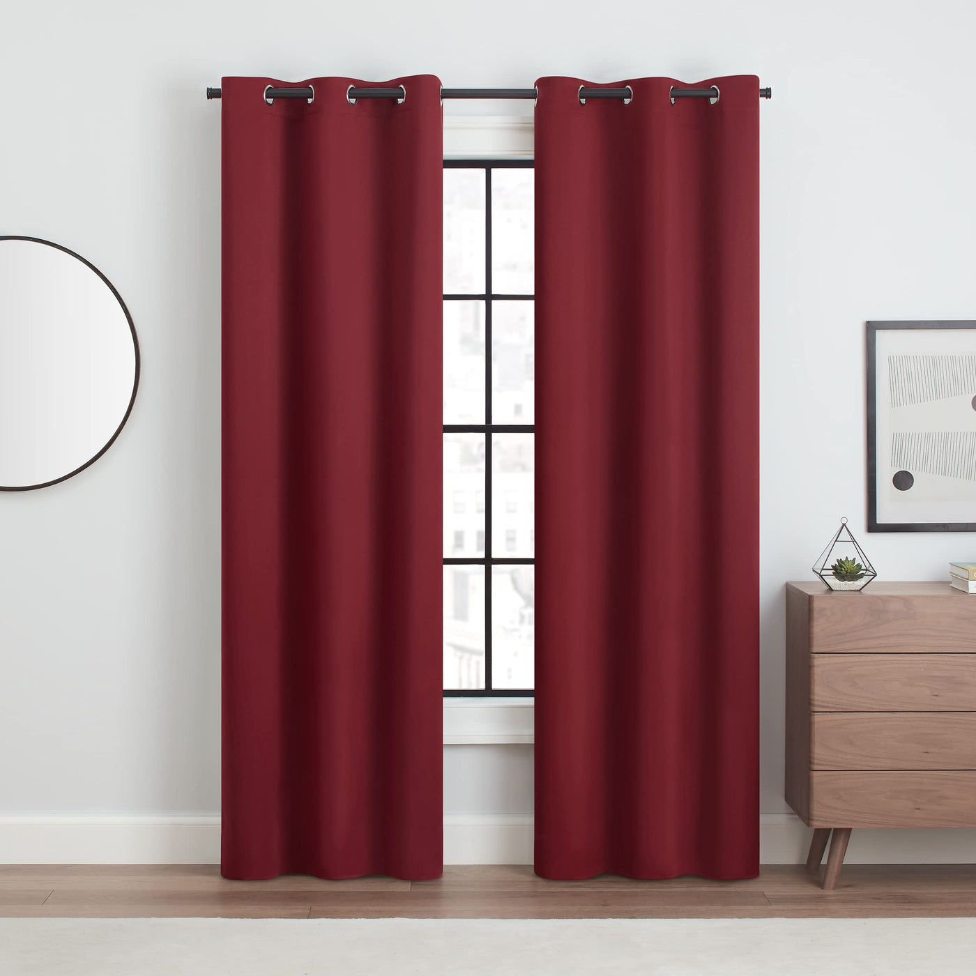 Eclipse Andover Solid Tripleweave Thermal Blackout Grommet Curtains For Bedroom (2 Panels), 42 In X 108 In, Red