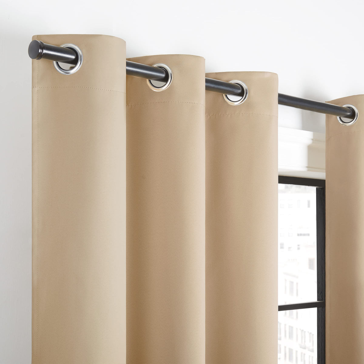 Eclipse Andover Solid Tripleweave Thermal Blackout Grommet Curtains For Bedroom (2 Panels), 42 In X 95 In, Beige