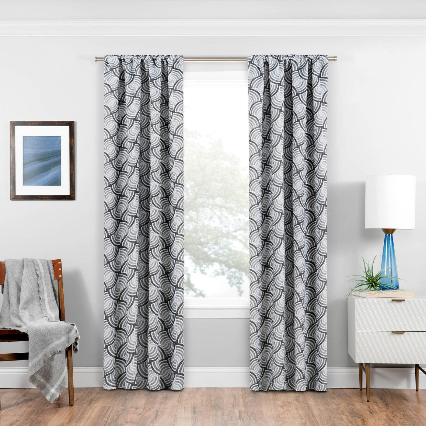 Eclipse Benchley Mid Century Modern Blackout Thermal Rod Pocket Window Curtains For Bedroom Or Living Room (1 Panel), 37 In X 95