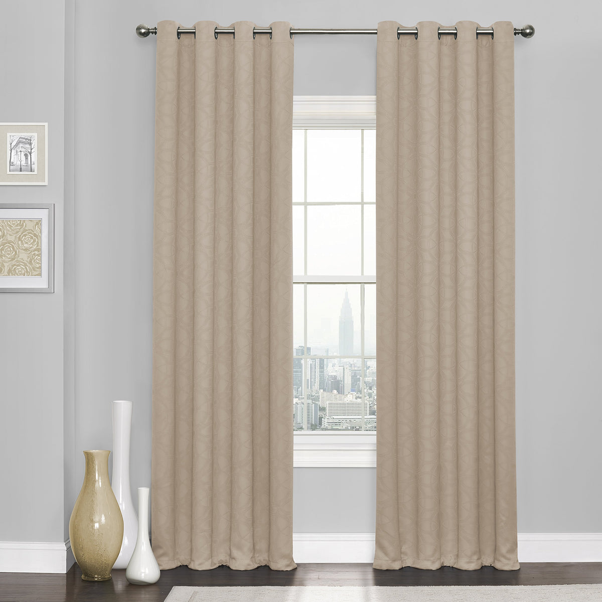 Find The Perfect Combination Of Fashion And Function With Eclipse Kingston Blackout Curtains. Eclipse Offers A Complete Line Of Functional Curtains That Provide Privacy, Manage Light, Reduce Noise, And Help With Energy Savings, Without Sacrificing The Latest Looks In Window Fashion. These Beautiful Panels Offer Blackout Benefits And Features An Embossed Circular Geometric Motif. Blackout Yarns Are Intricately Woven Into The Panel Giving It A Rich Hand And Luxurious Drapability. Each Panel Measures 52 Inches Wide In Your Choice Of 63, 84, 95, Or 108 Inches Long. 1.65 Inch Brushed Nickel Grommets Are Recommended With A 1 Inch Rod For Maximum Movement. Curtain Rod Sold Separately. 100Percent Polyester, Unlined Panel. Machine Washable.