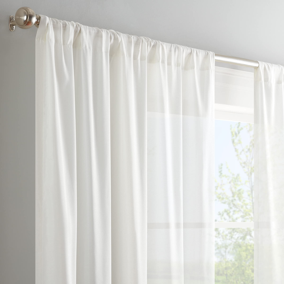 Q: What type of curtain rod is recommended for the Eclipse Chelsea sheer curtains?A: The curtains feature a 3-inch rod pocket and are recommended for use with a 1 to 1.5-inch diameter curtain rod for optimal movement.