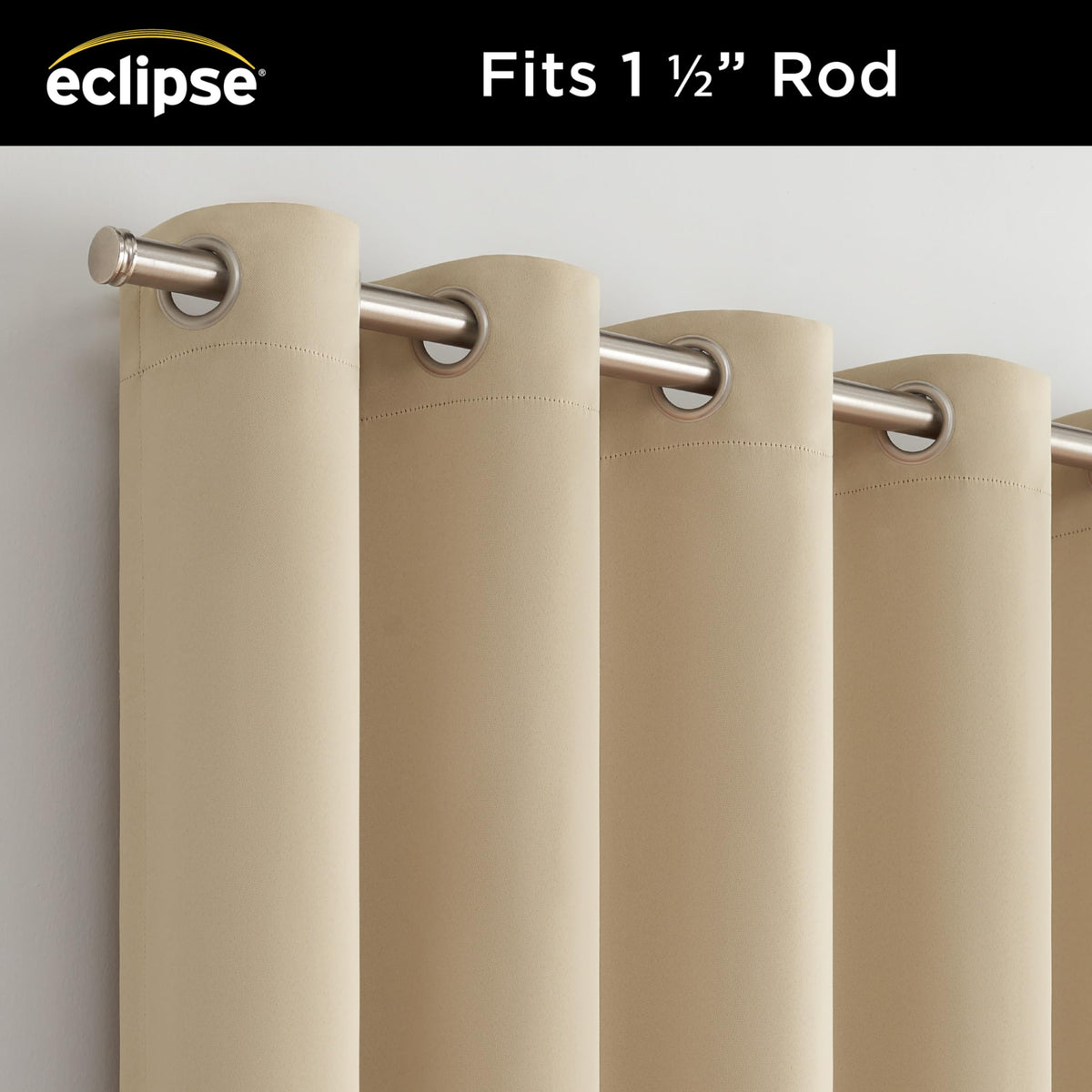 Q: What type of curtain rod is compatible with this panel?A: The grommet of the Eclipse Darrell curtain panel is designed to fit curtain rods up to 1.25 inches in diameter, ensuring easy installation and smooth sliding.