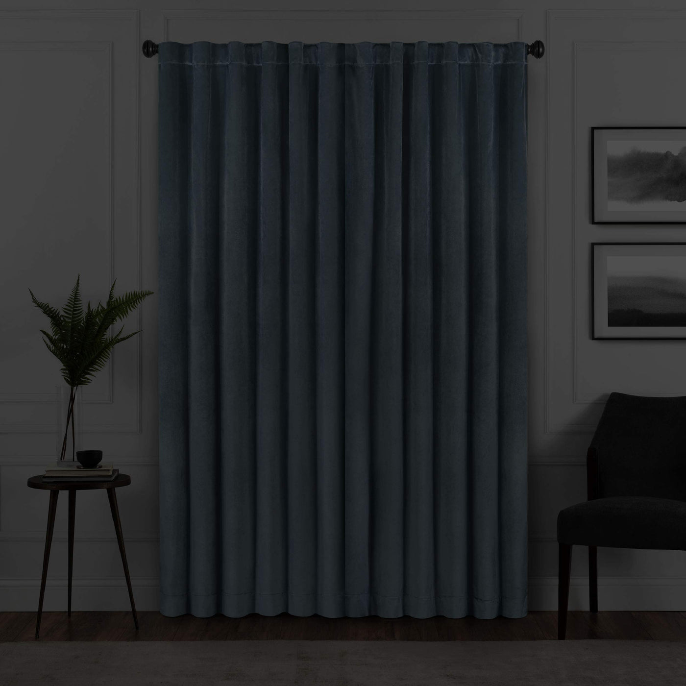 Eclipse Harper Velvet Rod Pocket Curtains For Bedroom, Single Panel, 50 In X 63 In, Blue