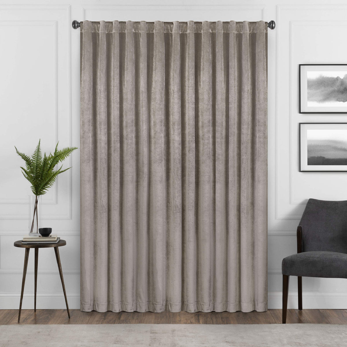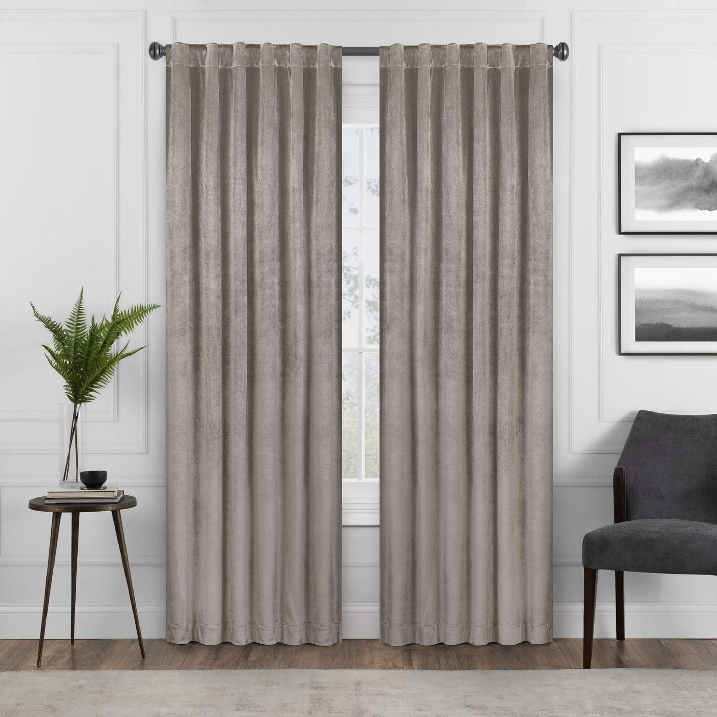 Eclipse Harper Velvet Rod Pocket Curtains For Bedroom, Single Panel, 50 In X 84 In, Mushroom