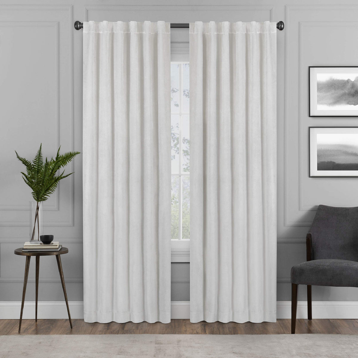 Eclipse Harper Velvet Rod Pocket Curtains For Bedroom, Single Panel, 50 In X 84 In, Snow