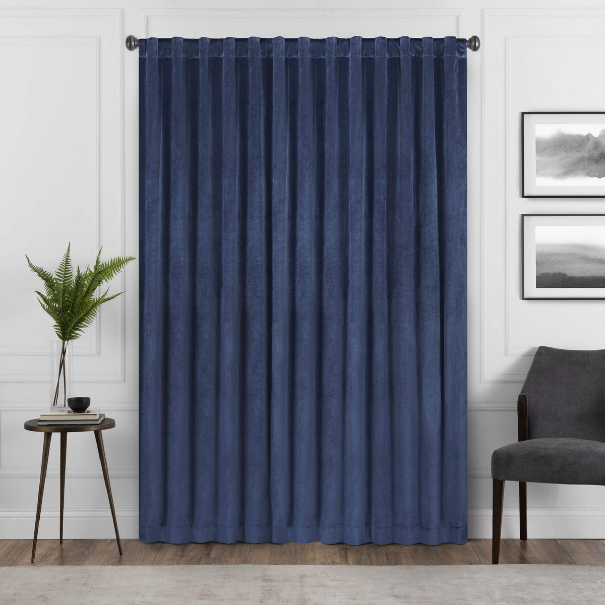 Eclipse Harper Velvet Rod Pocket Curtains For Bedroom, Single Panel, 50 In X 95 In, Navy