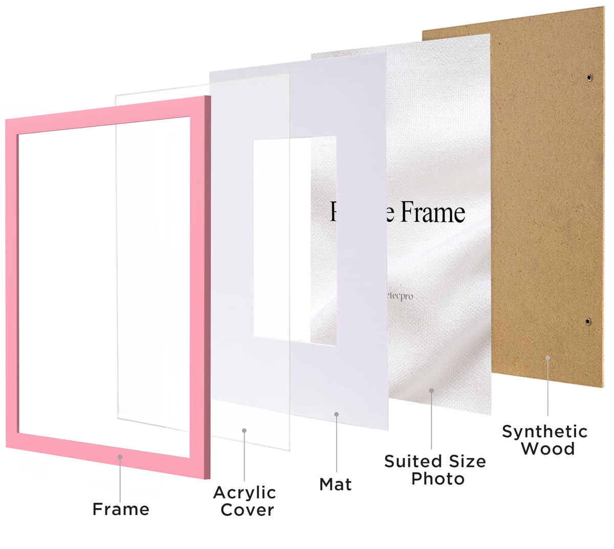 Q: What materials are used in the eletecpro picture frame?A: The frame is made of high-quality engineered wood and features a Plexiglas front, ensuring durability and a clear view of your photos while being lightweight and stable.