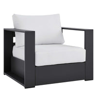 Upgrade your outdoor spaces with the Ergode Aluminum Outdoor Patio Armchair. This modern chair is crafted from sturdy powder-coated aluminum, guaranteeing enduring sophistication in your outdoor lounge. It features dense foam padding for ultimate comfort, complemented by a sunproof, water-resistant fabric-covered seat and backrest, making it perfect for unwinding by the pool. The removable, stain-resistant cushions ensure effortless maintenance. Equipped with non-marking foot glides to safeguard your floor, this weatherproof armchair is ideal for daydreaming outdoors. Assembly is a breeze with the included instructions. Weight Capacity: 331 lbs.Included in the Set:One - Ergode Powder-Coated Aluminum Armchair