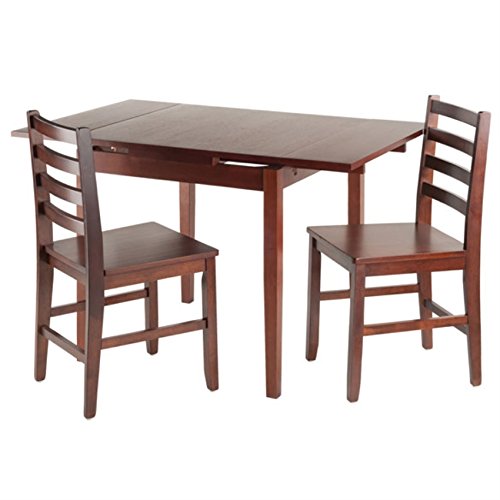 Introducing the elegant 3-Piece Shaye Dining Table Set, renowned for its impeccable style and sturdy construction. The table features solid, tapered legs with a unique notch where they meet the frame, creating a contemporary aesthetic. Its tabletop has a gracefully curved profile, adding refinement. The set includes two Slat Back Chairs, designed with contoured seats and elegant rainbow arches that beautifully complement the traditional ladderback design. Crafted from durable Solid Wood, both the table and chairs showcase the natural wood grain with a warm Walnut finish. Table Dimensions: 47.2"W x 29.5"D x 29"H. Overall chair dimensions: 34.5"H x 17"W x 19.25"D. Seat height: 19.7"H. Seat back height: 16.75"H. Seat back width: 17"W. Seat dimensions width: 14" to 16"W. Seat depth: 15.5". Static weight limit for chairs: 220 lbs. Assembly is required, and the set ships in 2 boxes. Dimension: 47.24" W x 29.53" D x 29.13" H. Weight: 37.25 lbs.