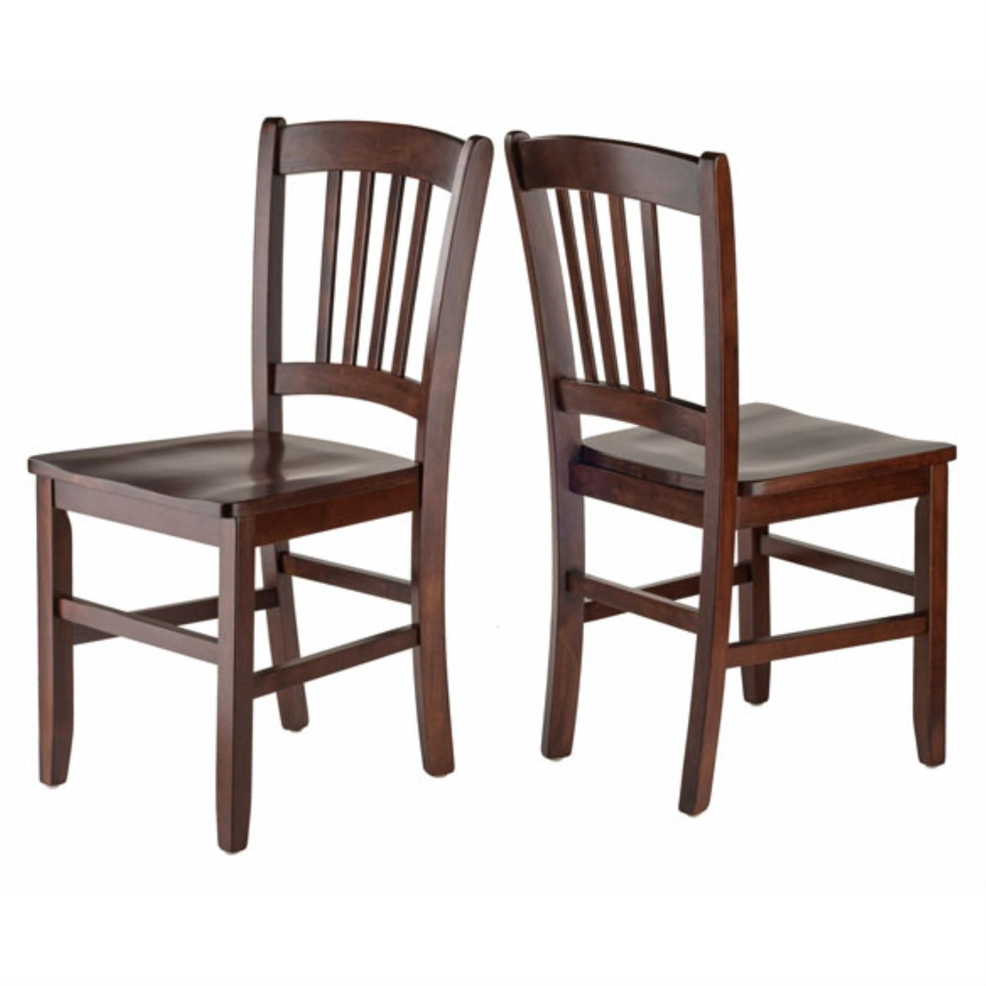 Introducing the elegant 3-Piece Shaye Dining Table Set, renowned for its impeccable style and sturdy construction. The table features solid, tapered legs with a unique notch where they meet the frame, creating a contemporary aesthetic. Its tabletop has a gracefully curved profile, adding refinement. The set includes two Slat Back Chairs, designed with contoured seats and elegant rainbow arches that beautifully complement the traditional ladderback design. Crafted from durable Solid Wood, both the table and chairs showcase the natural wood grain with a warm Walnut finish. Table Dimensions: 47.2"W x 29.5"D x 29"H. Overall chair dimensions: 34.5"H x 17"W x 19.25"D. Seat height: 19.7"H. Seat back height: 16.75"H. Seat back width: 17"W. Seat dimensions width: 14" to 16"W. Seat depth: 15.5". Static weight limit for chairs: 220 lbs. Assembly is required, and the set ships in 2 boxes. Dimension: 47.24" W x 29.53" D x 29.13" H. Weight: 37.25 lbs.