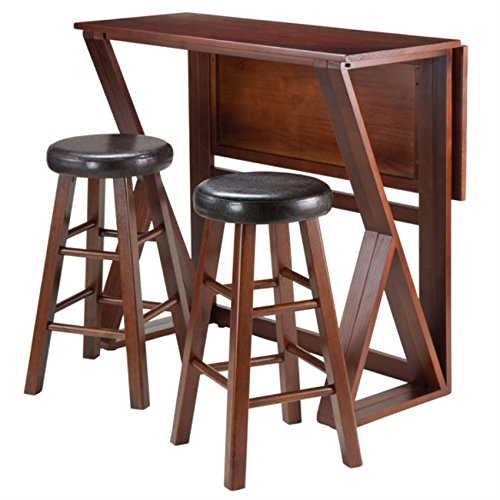 Ergode Harrington Drop Leaf High Table Set | 2 Stools | Walnut Finish | 39.37'W x 31.5'D x 36.22'H | Solid Wood Construction