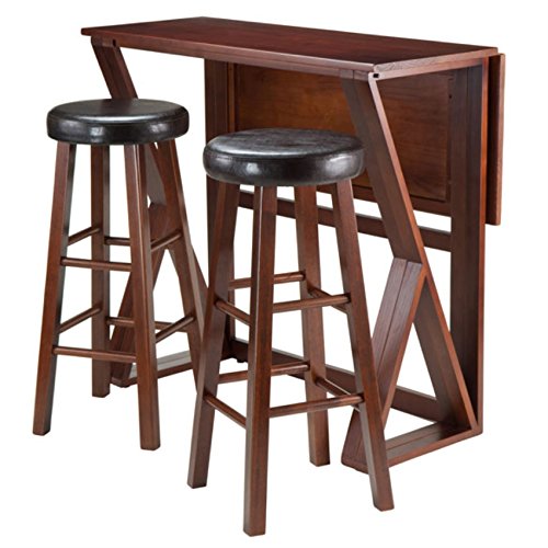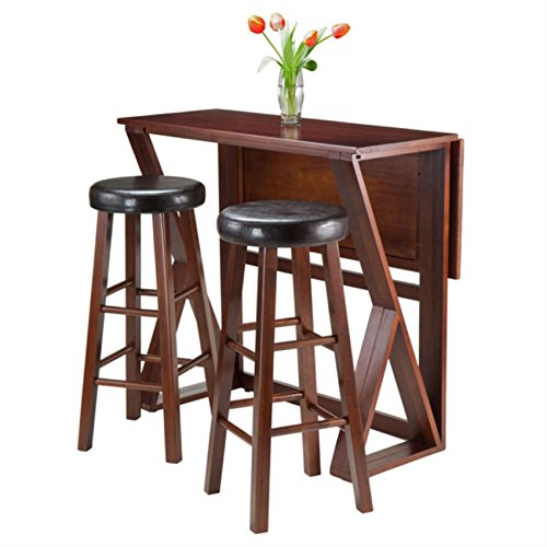 Ergode Harrington Drop Leaf High Table Set | Solid Wood | Walnut Finish | 39.37' W x 31.5' D x 36.22' H | Includes 2 Stools | Fully Assembled (94336-VV)
