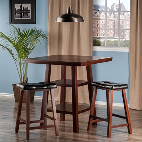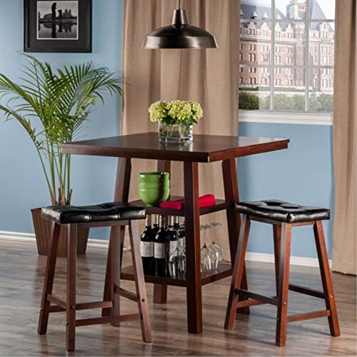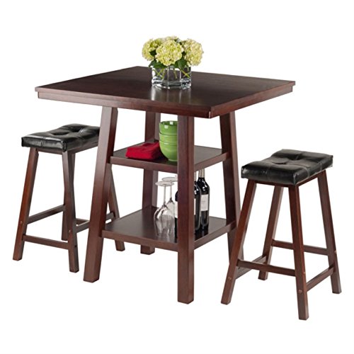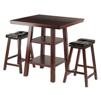 Ergode Harrington Drop Leaf High Table Set | Solid Wood | Walnut Finish | 39.37' W x 31.5' D x 36.22' H | Includes 2 Stools | Fully Assembled (94362-VV)