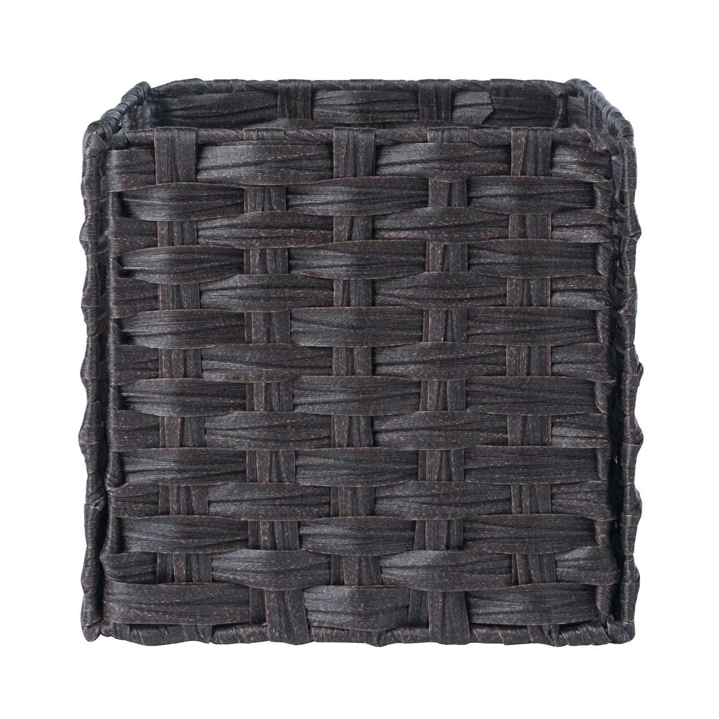 The Ergode Melanie 2-piece Foldable Basket Set is a stylish and practical solution for organizing any space. These two baskets, measuring 10.24"W x 11.02"D, are perfect for managing various items such as toys, magazines, dishtowels, or miscellaneous items. Made from durable flat polypropylene, these baskets are suitable for use in steamy bathrooms or kids' rooms. Cleaning is a breeze with just a wipe of a damp cloth. They conveniently fit standard bookshelf dimensions and can be easily folded for storage. Featuring cut-out handles and a rich chocolate finish, these versatile organizers complement both contemporary and rustic farmhouse settings. The set ships in one box, ready to use.