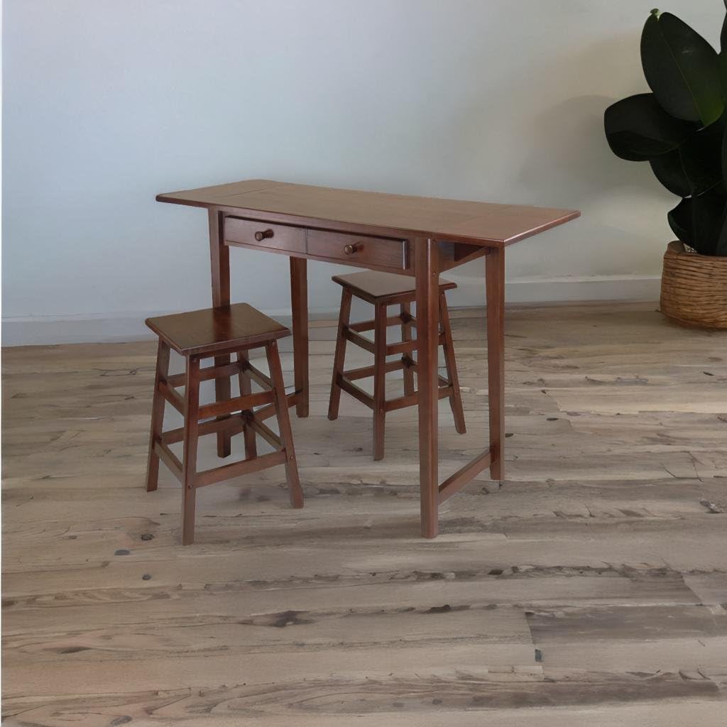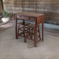 Ergode Mercer Double Drop Leaf Table with 2 Stools - Versatile, Compact, Cappuccino Finish